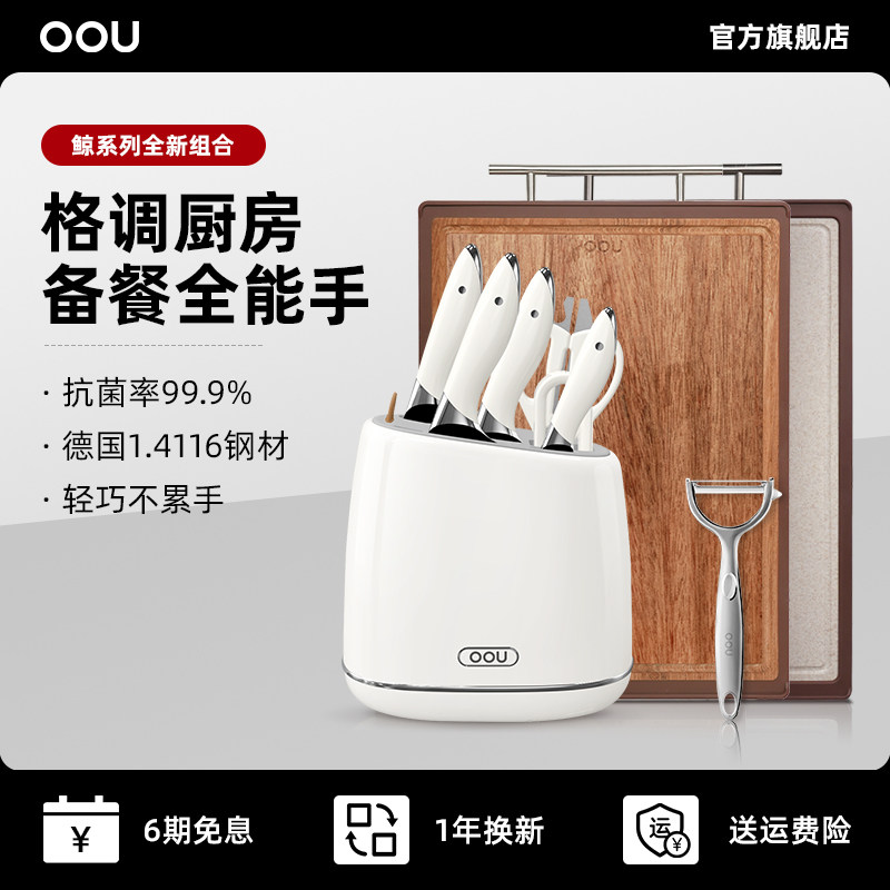 OOU德国不锈钢刀具套装白色德国钢材厨房厨具菜刀家用切菜板砧板