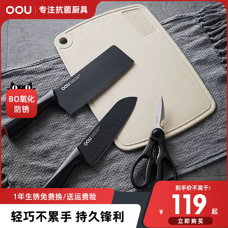 OOU刀具套装厨房菜刀菜板组合家用不锈钢德国进口刀砧板厨具全套