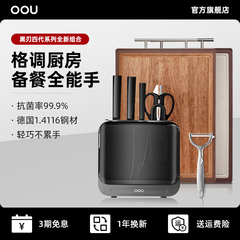 OOU黑刃刀具全套装厨具家用组合菜刀厨房全套专用切菜刀砧板组合
