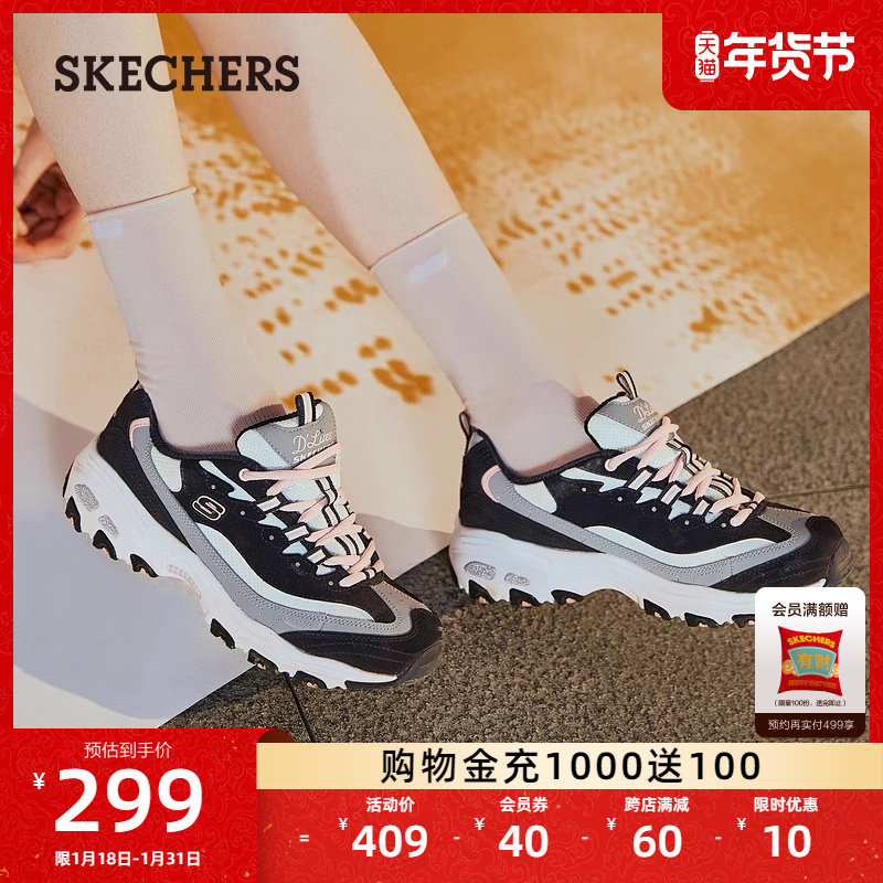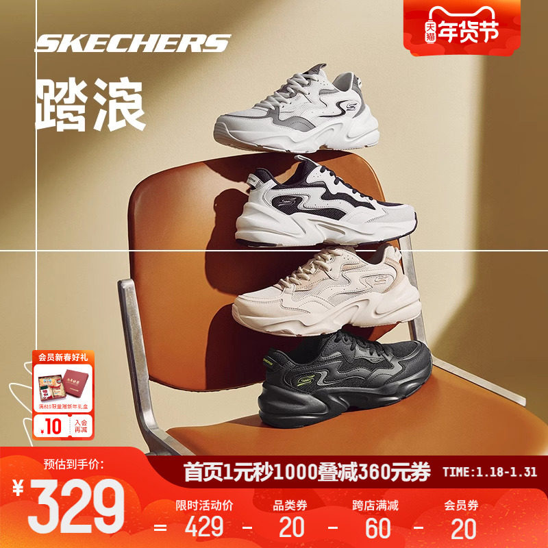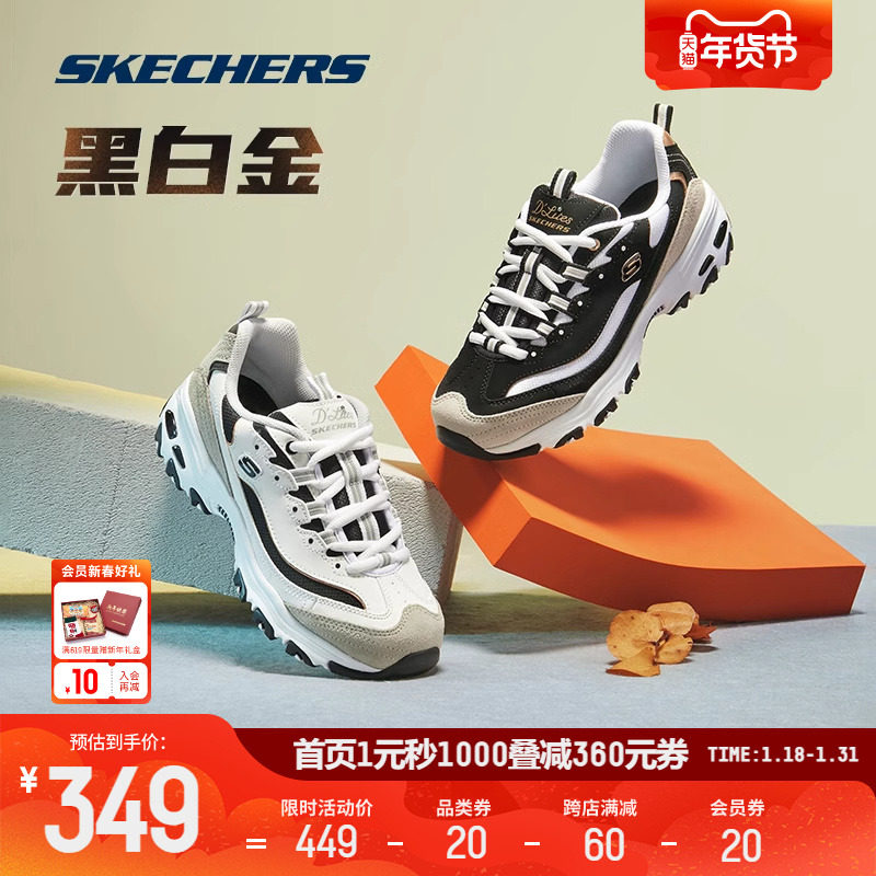 斯凯奇官方女鞋运动鞋冬季新款女士休闲鞋复古老爹鞋小白鞋熊猫鞋