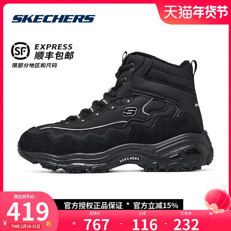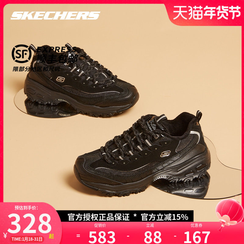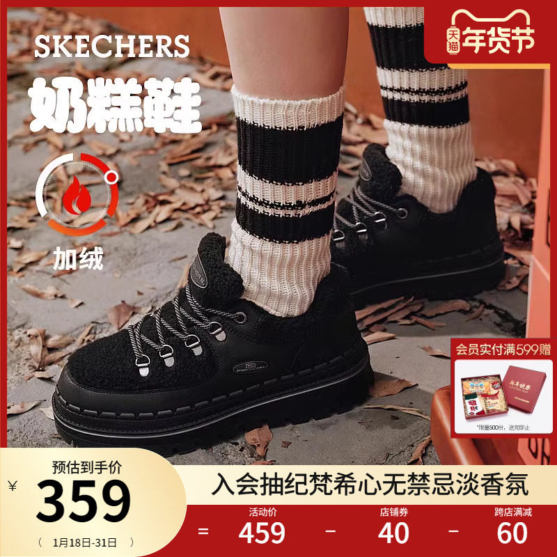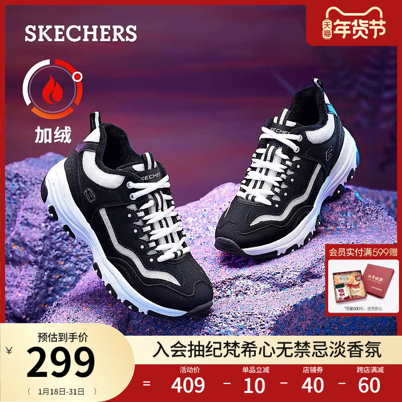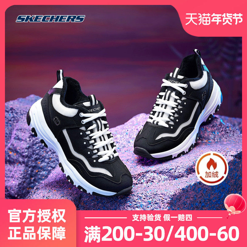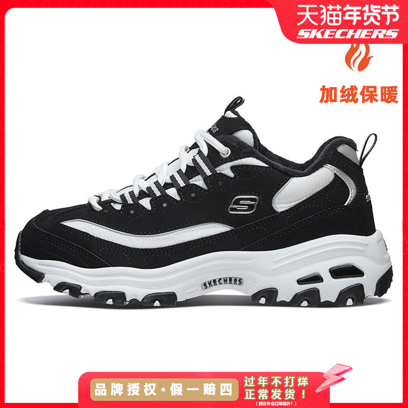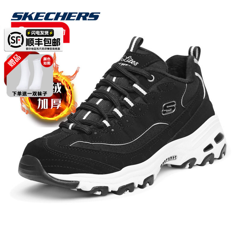 斯凯奇加绒女鞋冬季保暖厚底棉鞋熊猫鞋女运动休闲老爹鞋潮鞋男鞋