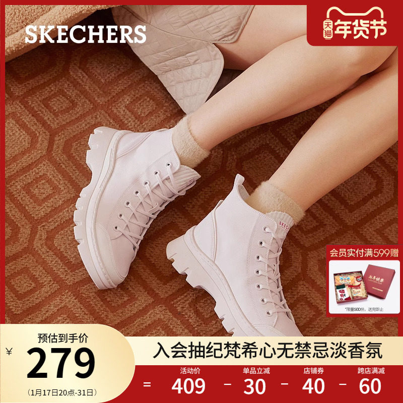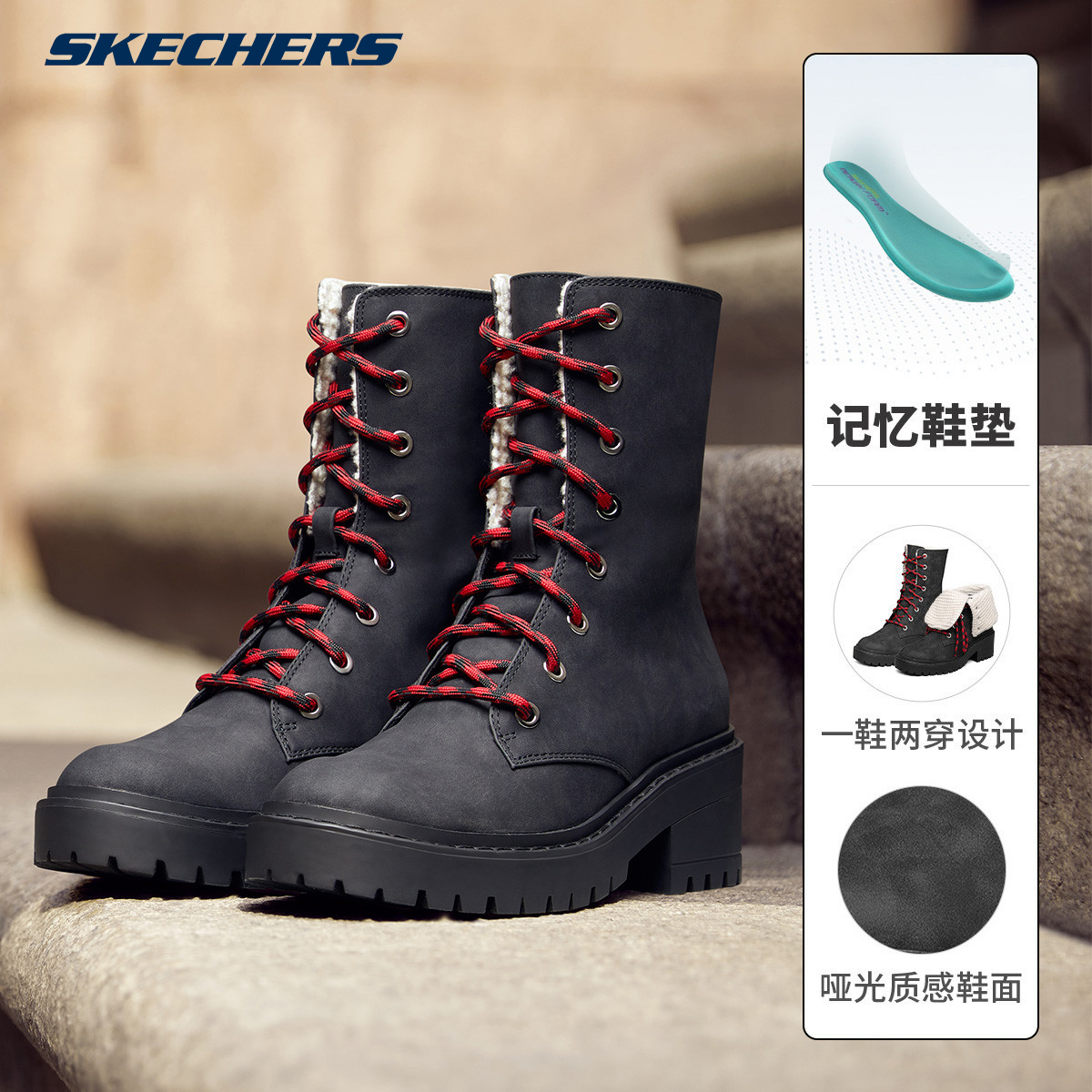 Skechers斯凯奇秋冬女鞋粗跟厚底内增高马丁靴英伦风保暖显高短靴