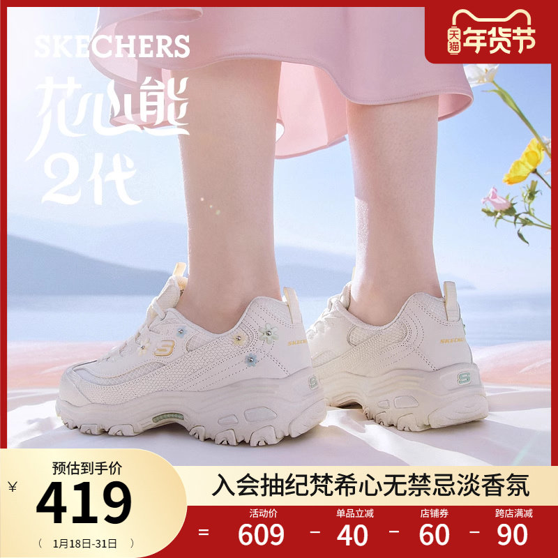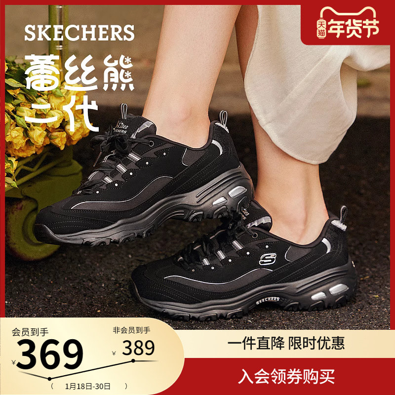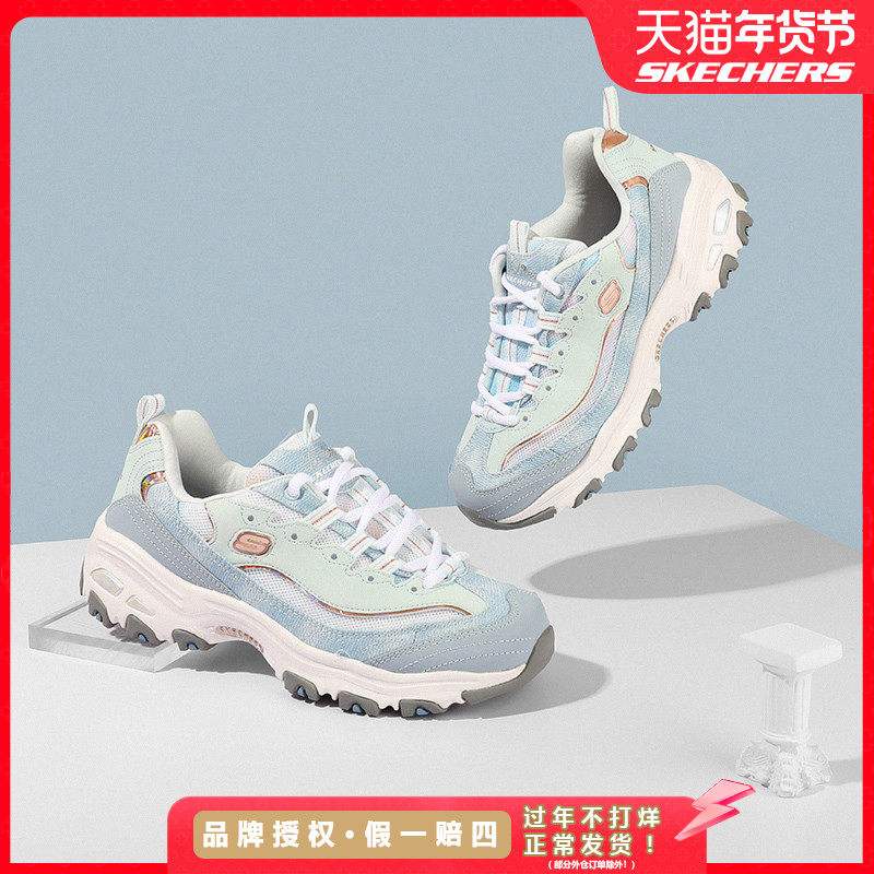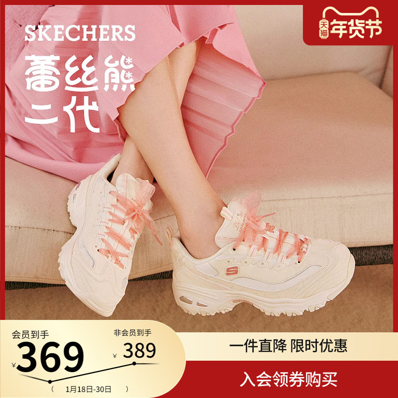 Skechers斯凯奇蕾丝熊二代欧根纱运动鞋春女鞋厚底增高拼色老爹鞋