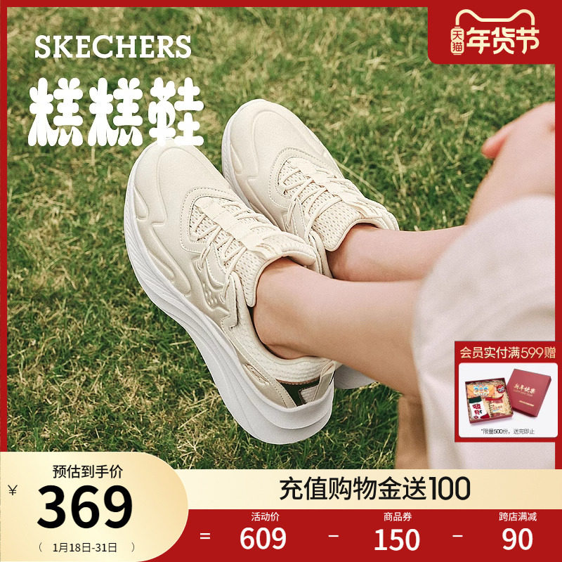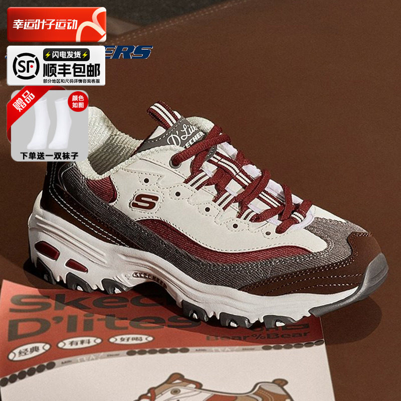 斯凯奇女鞋春秋冬季款多巴胺奶茶熊猫鞋复古厚底休闲老爹鞋13143