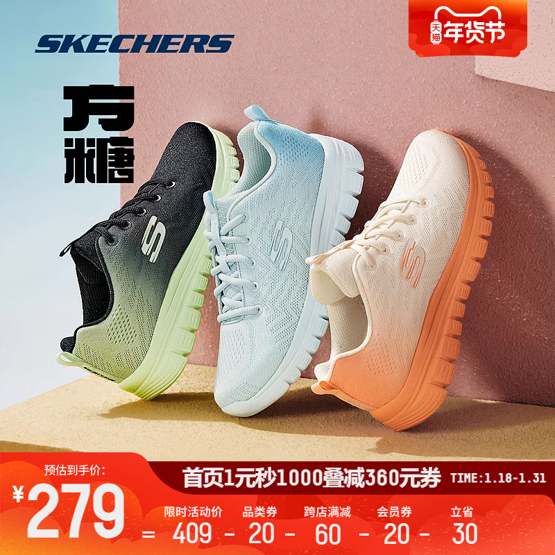 Skechers斯凯奇2023年冬季新款女鞋子方糖休闲透气运动鞋健步鞋