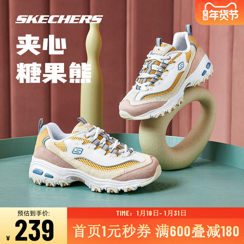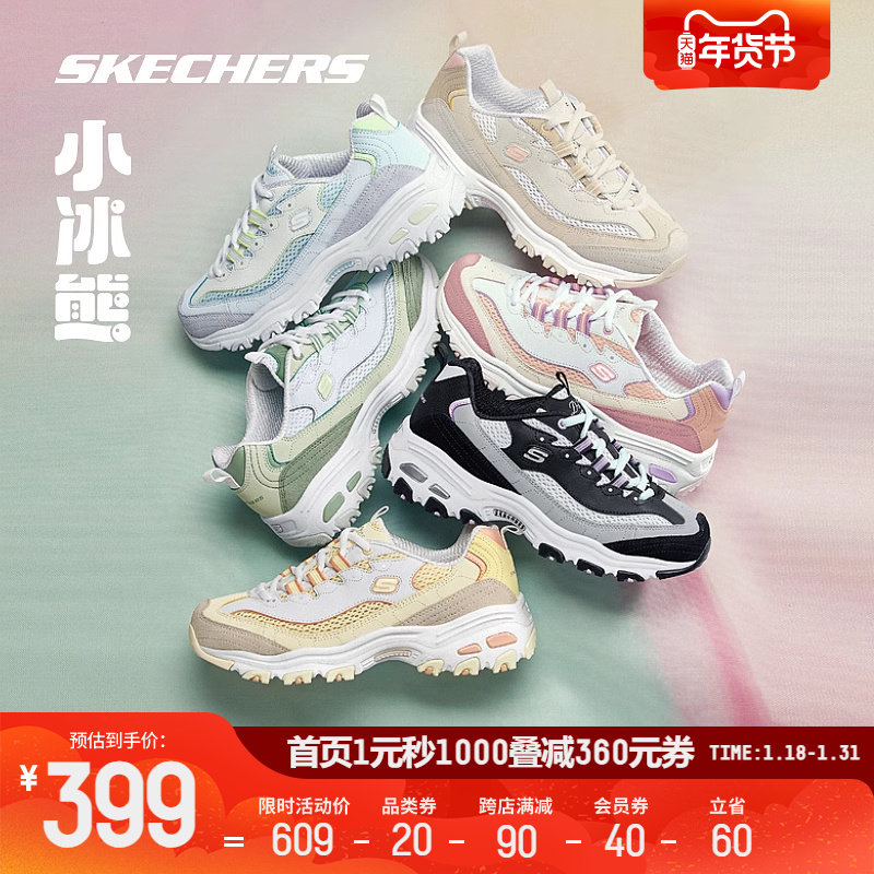 斯凯奇官方outlets奶茶熊冰淇淋调色盘跑步运动老爹鞋多巴胺女鞋