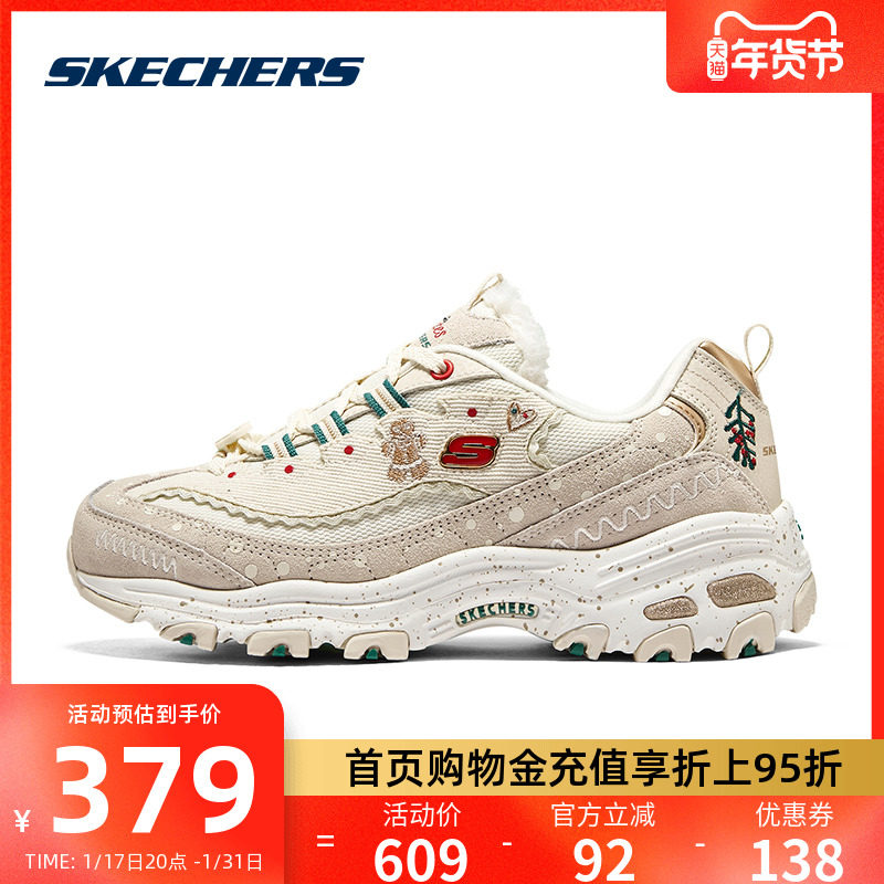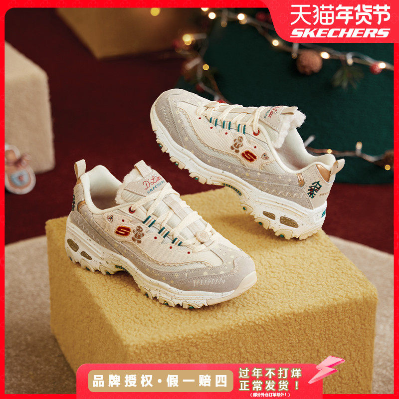 斯凯奇女鞋秋冬季姜饼人圣诞羊羔绒老爹鞋雪饼鞋加绒熊猫鞋149257