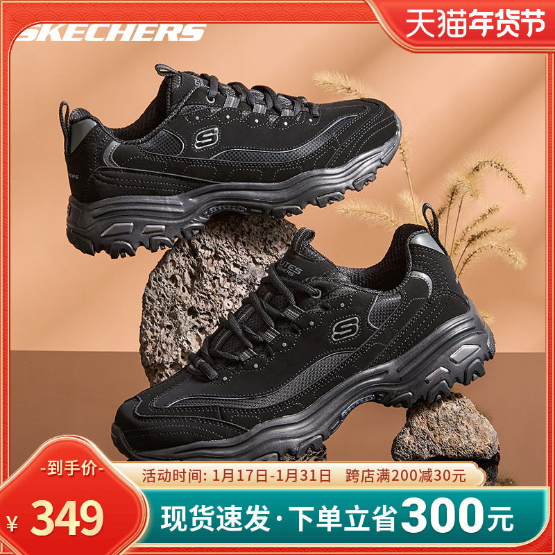 斯凯奇男鞋纯黑官网旗舰四季厚底女鞋全黑熊猫鞋休闲鞋运动老爹鞋