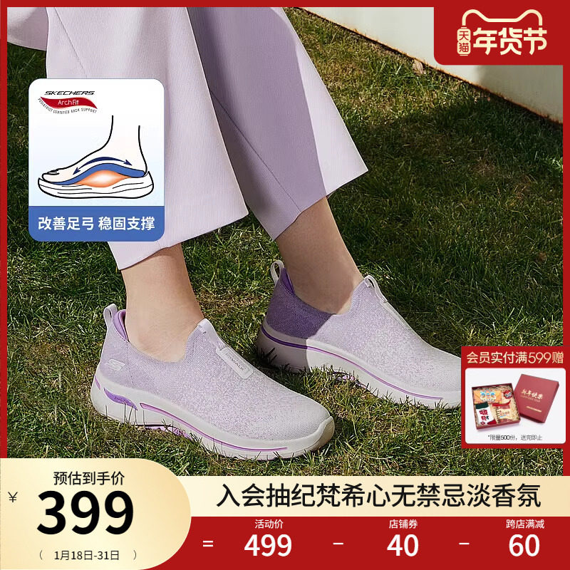 Skechers斯凯奇春季软底缓震健步鞋轻便舒适休闲散步一脚蹬女鞋