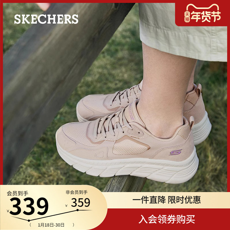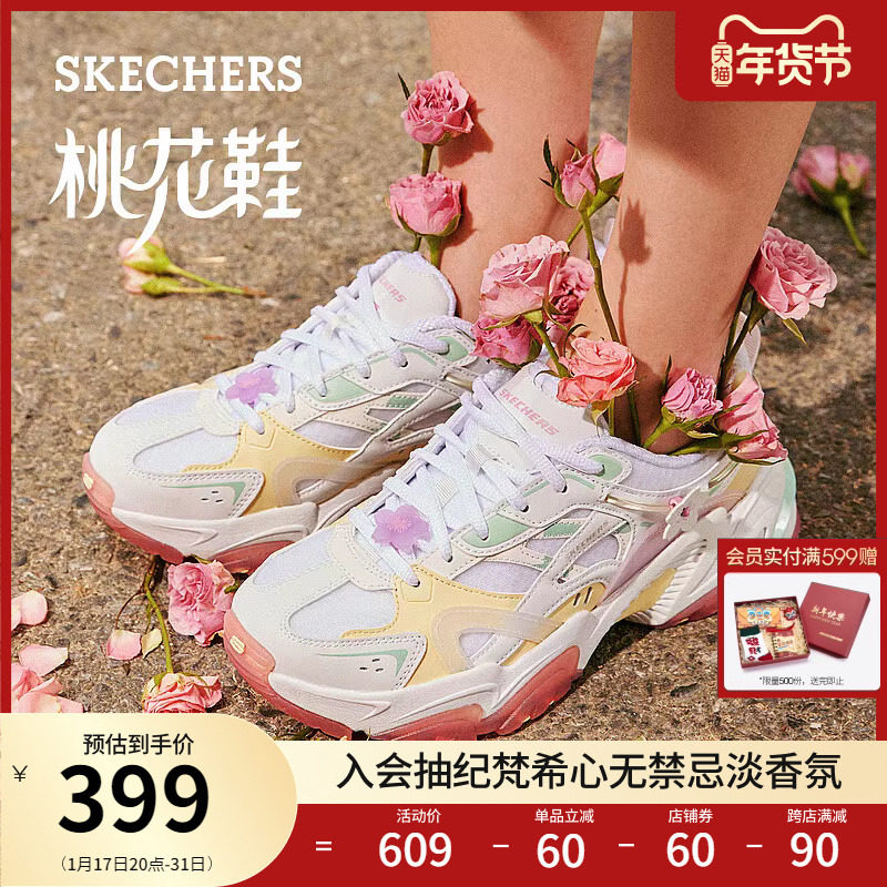 Skechers斯凯奇桃花鞋春季女鞋复古厚底甜美粉色机甲鞋厚底老爹鞋