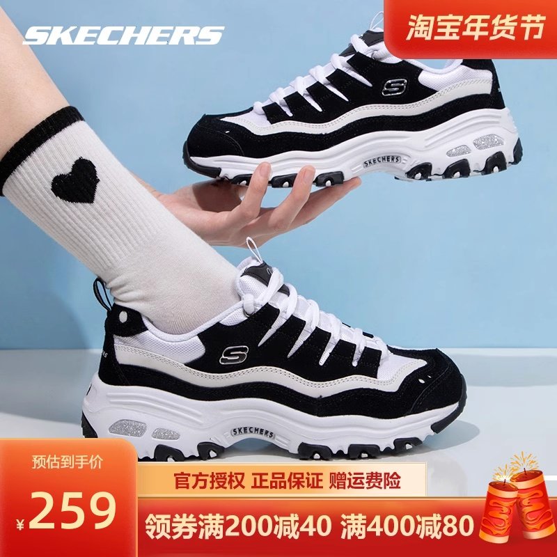 Skechers斯凯奇女鞋 秋季新款厚底黑白熊猫老爹鞋休闲运动鞋13141