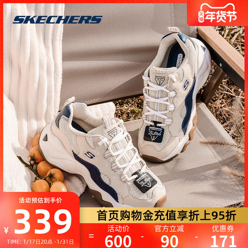 Skechers斯凯奇女鞋冬季老爹鞋网面透气休闲男鞋舒适情侣鞋运动鞋