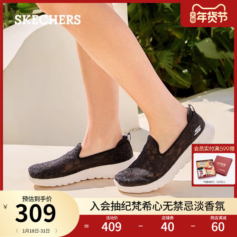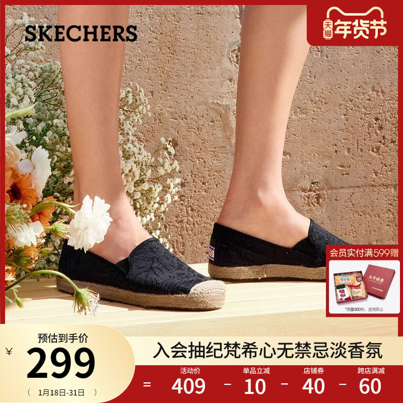 Skechers斯凯奇渔夫鞋女鞋春季蕾丝轻质平底单鞋一脚蹬懒人鞋