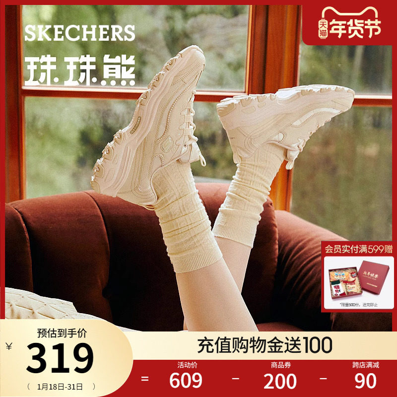 Skechers斯凯奇珠珠熊小香风女鞋熊猫鞋春季厚底增高显脚瘦老爹鞋