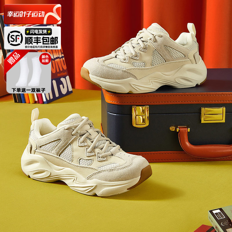 Skechers斯凯奇女鞋小甜豆秋冬季款厚底女老爹鞋自然色复古熊猫鞋