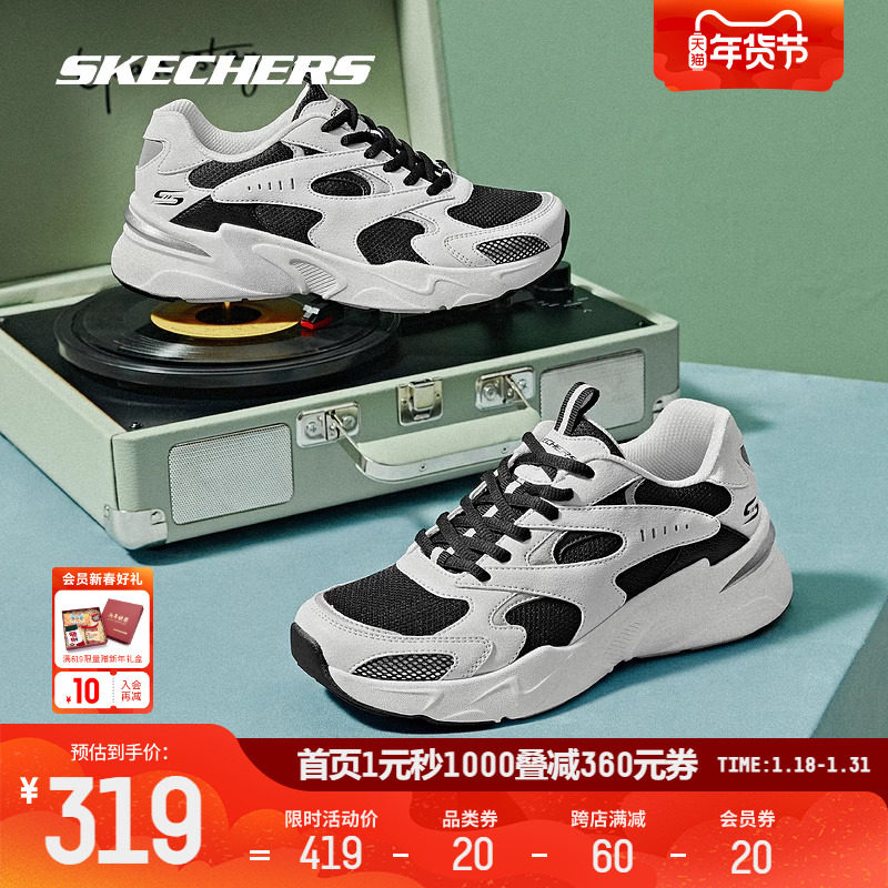 Skechers斯凯奇黑白复古熊猫鞋情侣鞋校园女鞋休闲鞋男老爹鞋官网