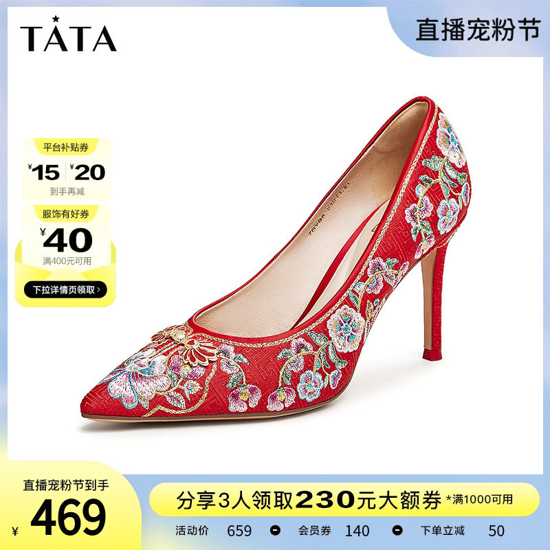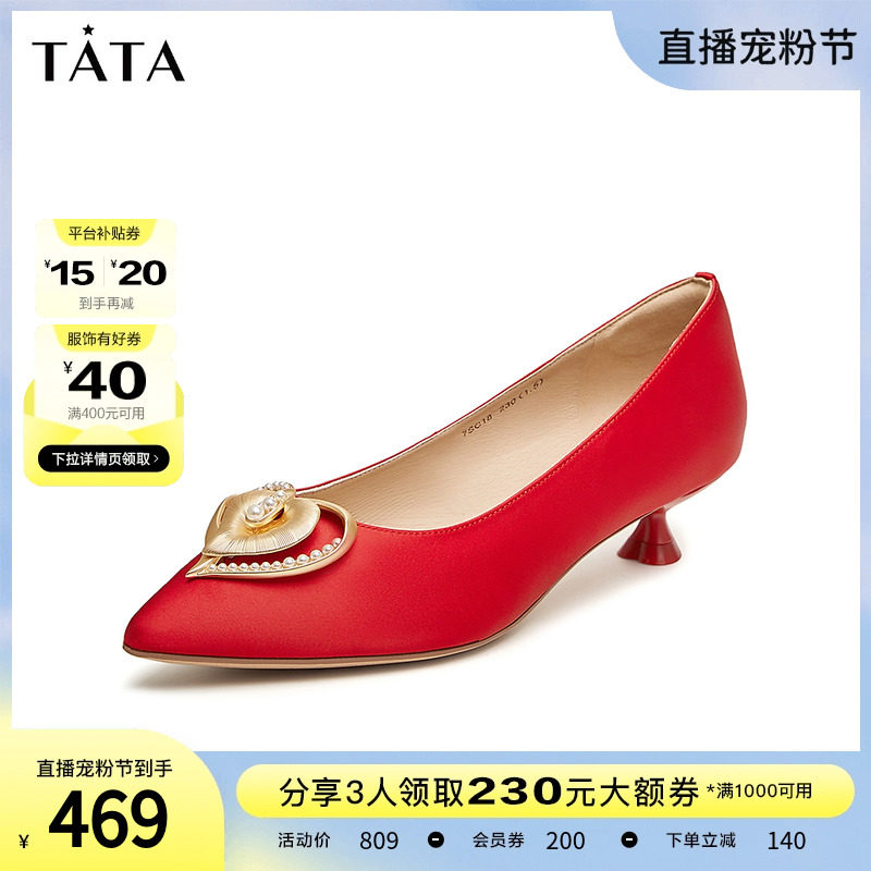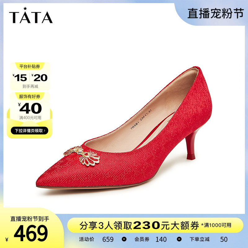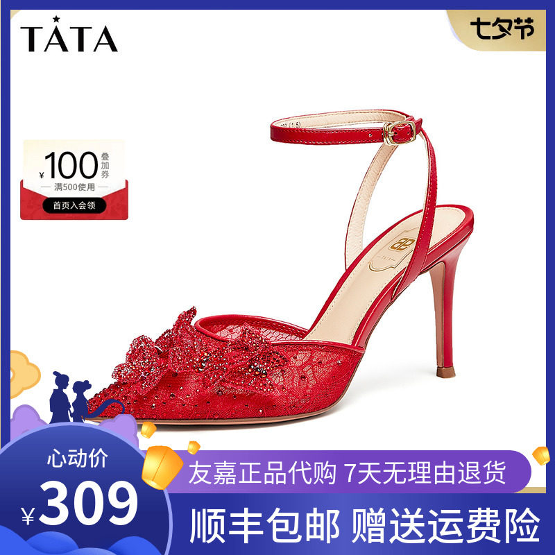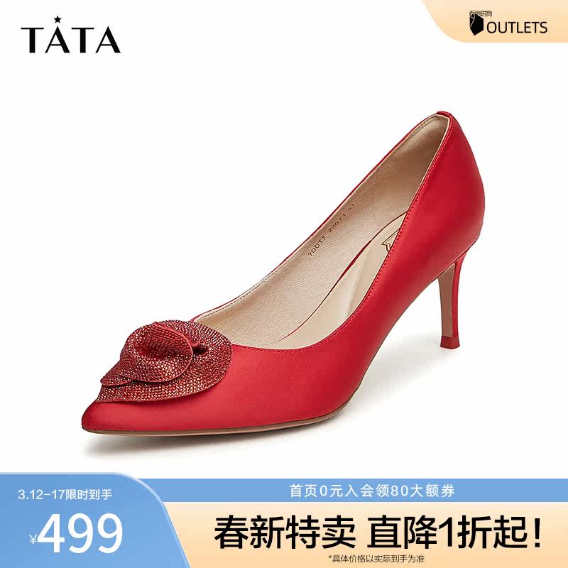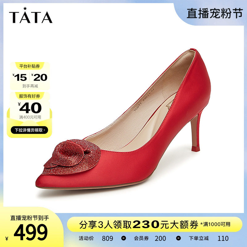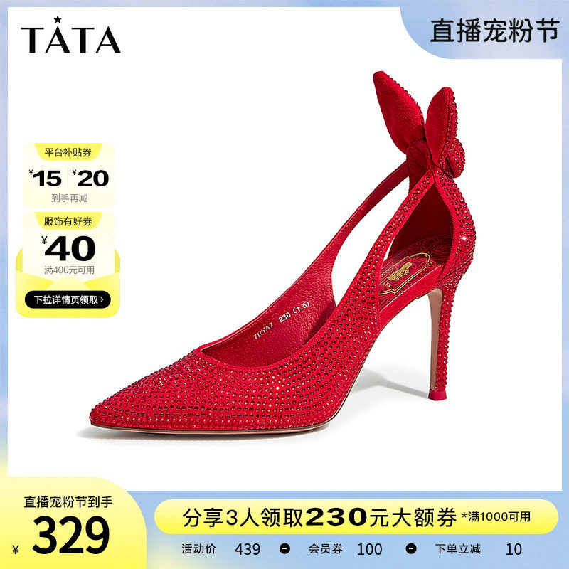 Tata他她水钻秀禾婚鞋新娘鞋红色高跟鞋女2023春商场新款7RYA7AK3