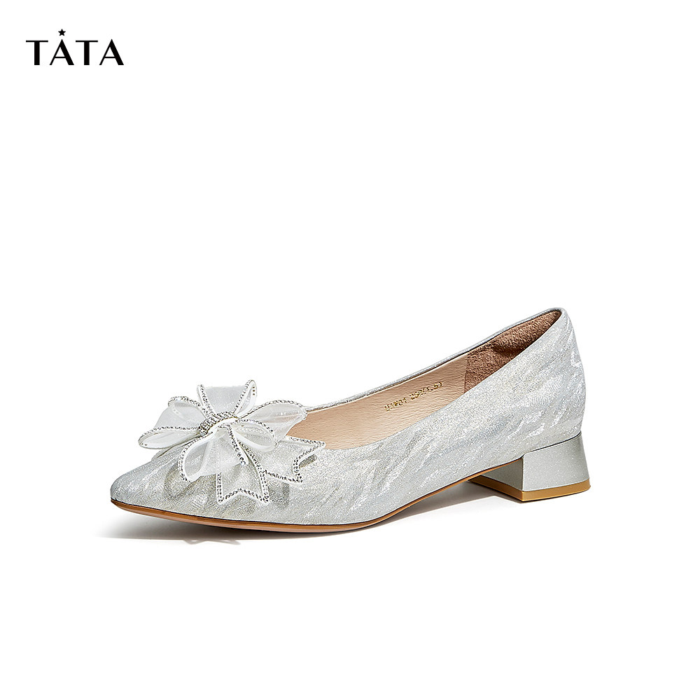 Tata他她蝴蝶结粗跟婚鞋女尖头晚晚鞋法式单鞋20春新款UAW01AQ3