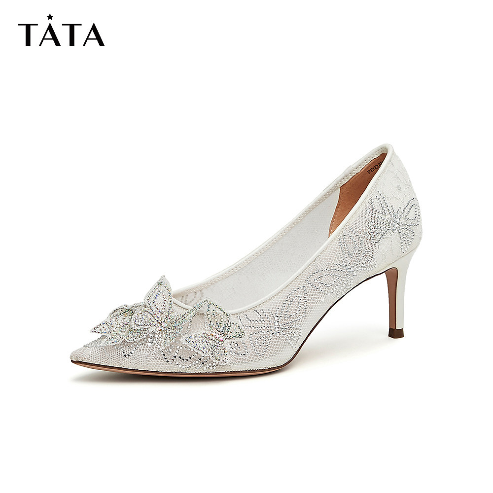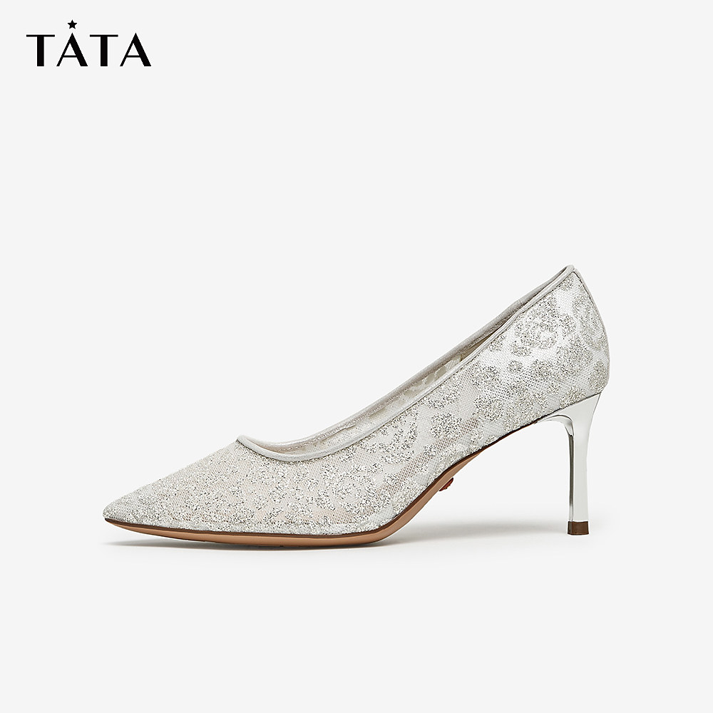 Tata他她尖头气质高跟鞋网纱婚鞋浅口单鞋女春季新款7DDR5CQ3