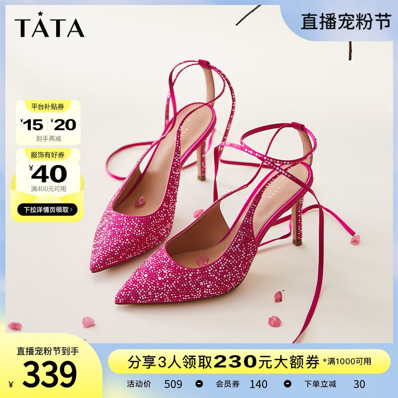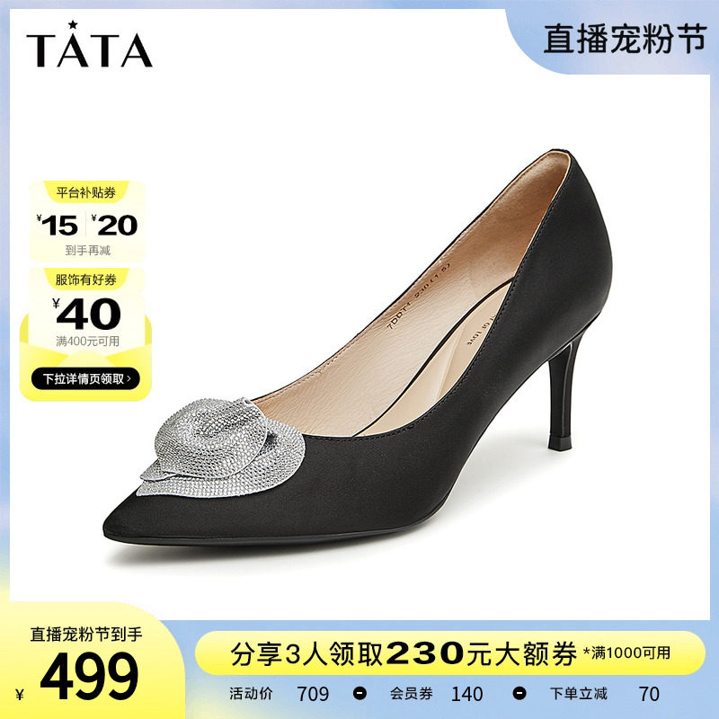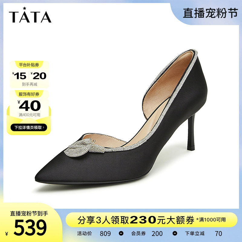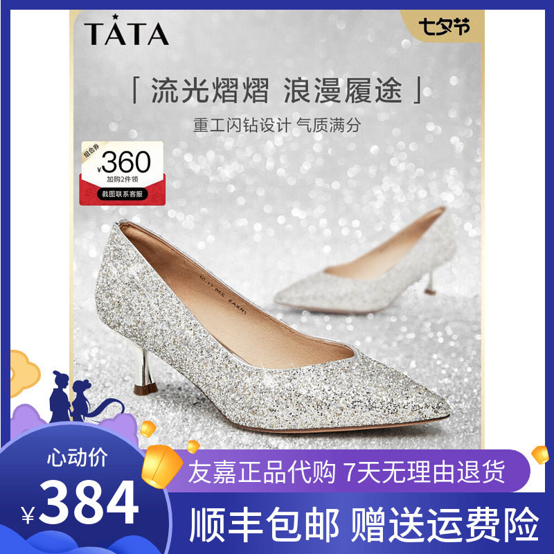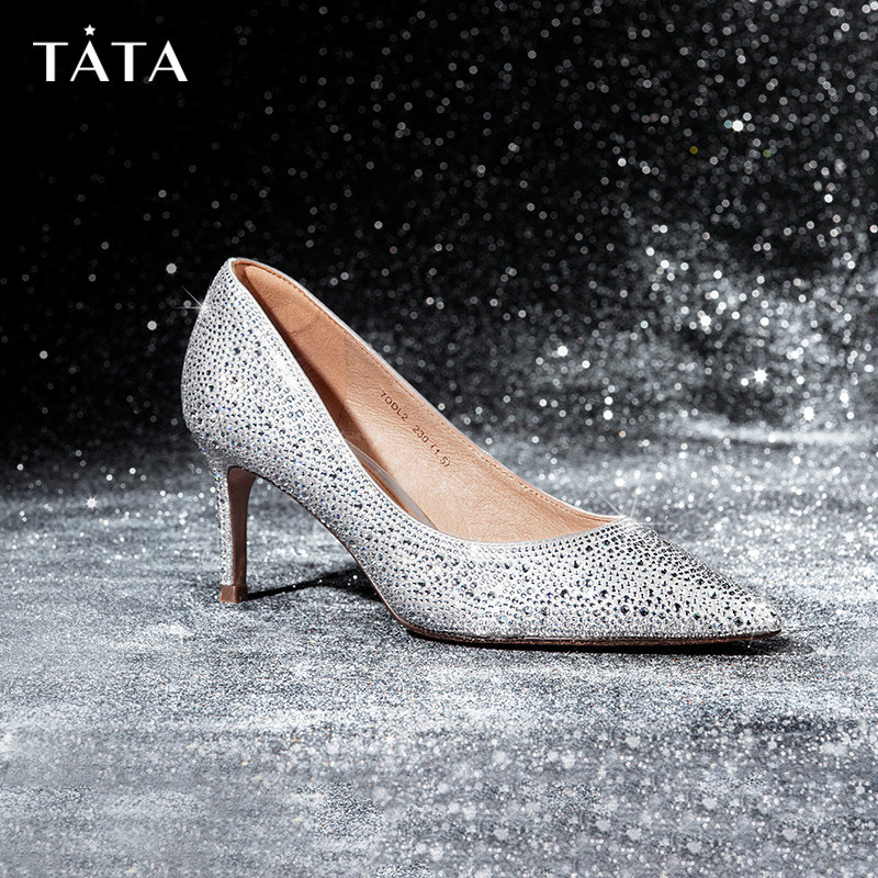 Tata他她春季百搭新款闪钻尖头浅口女单鞋婚鞋高跟鞋宴会7DDL2CQ2
