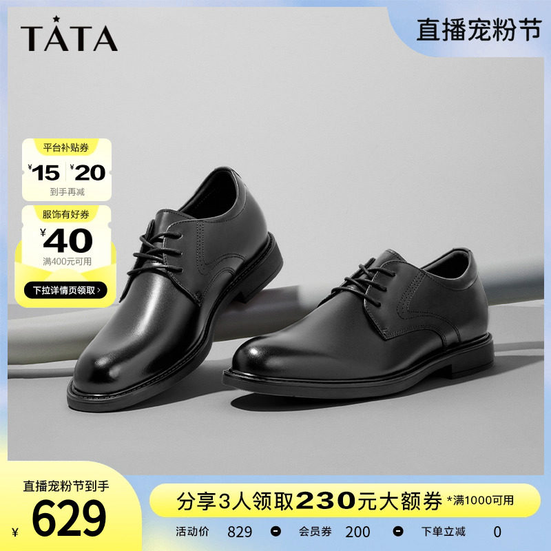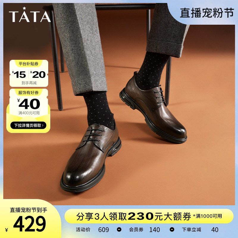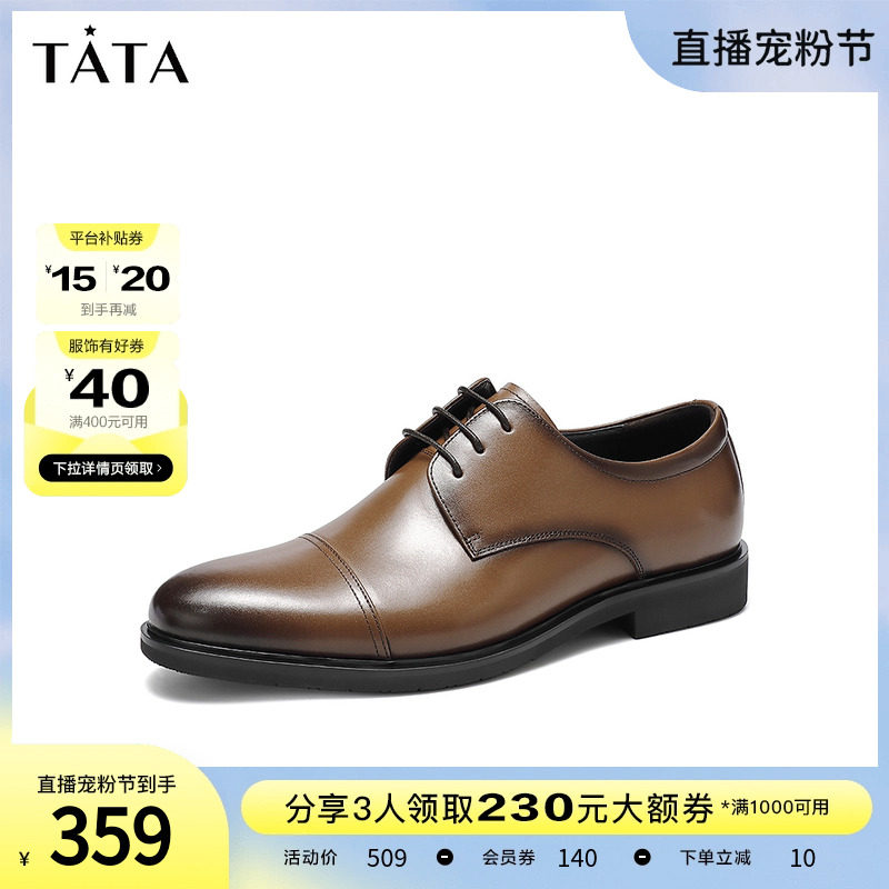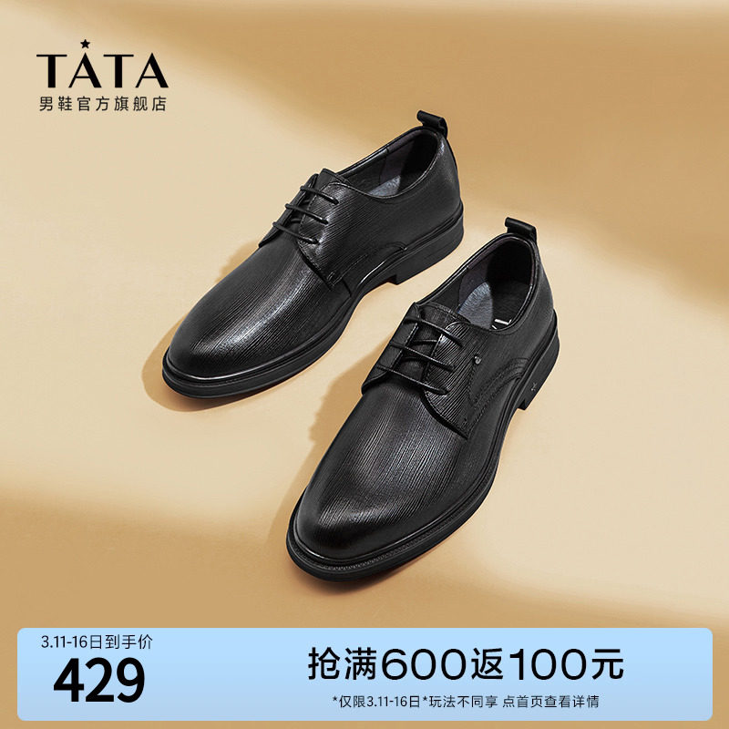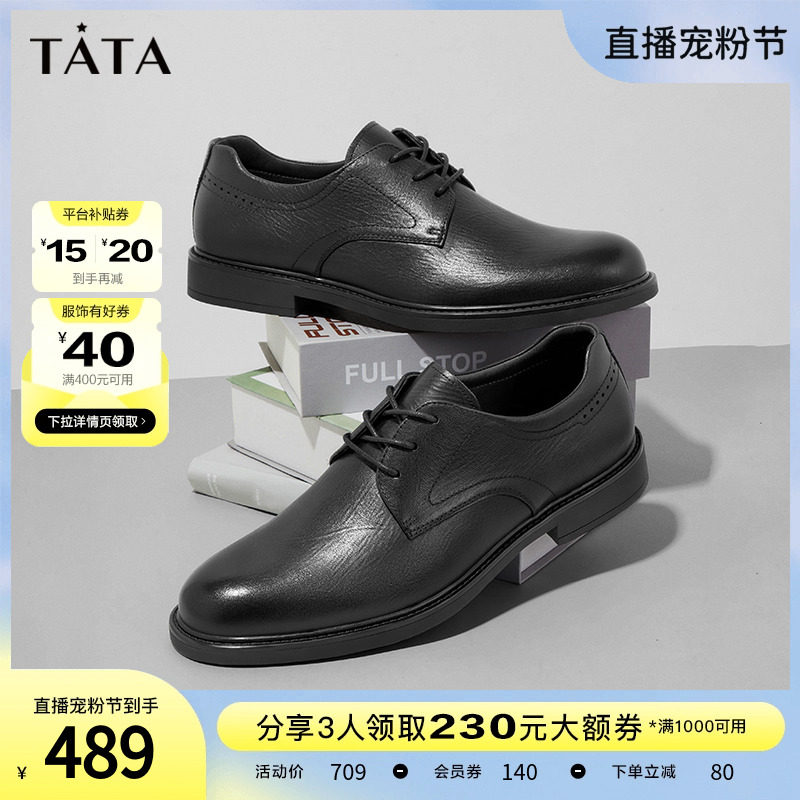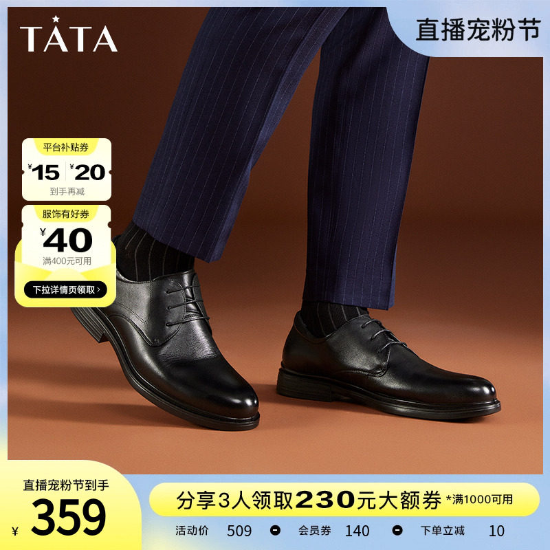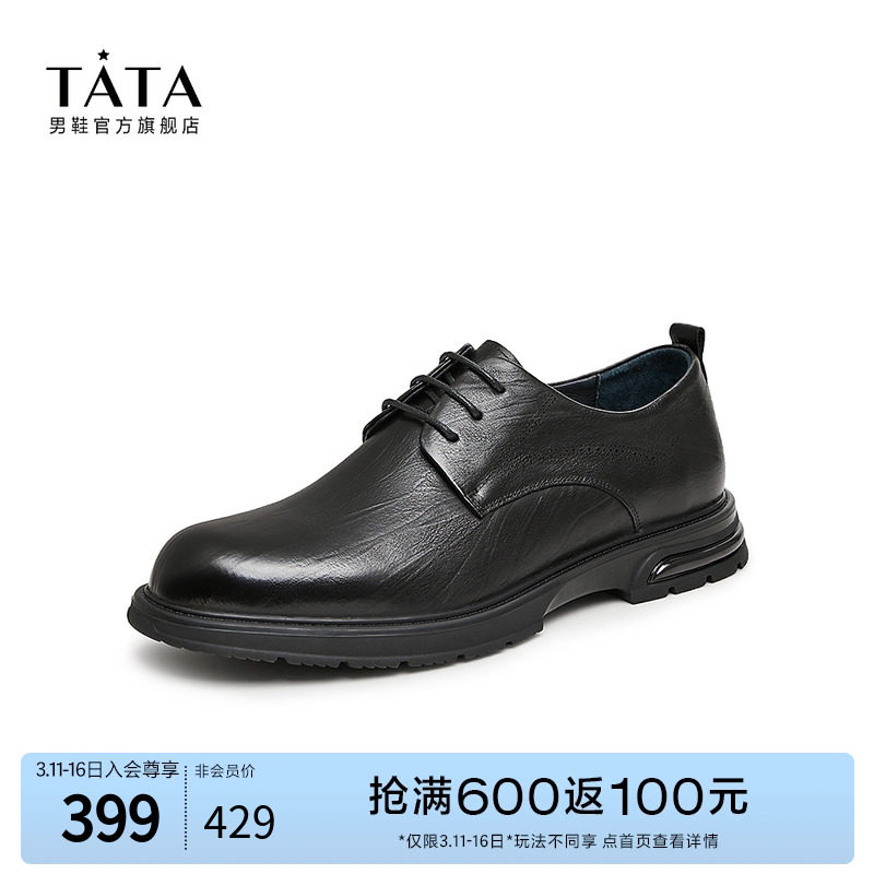 Tata/他她真皮英伦商务正装皮鞋男婚鞋德比鞋2023秋新款OBB01CM3