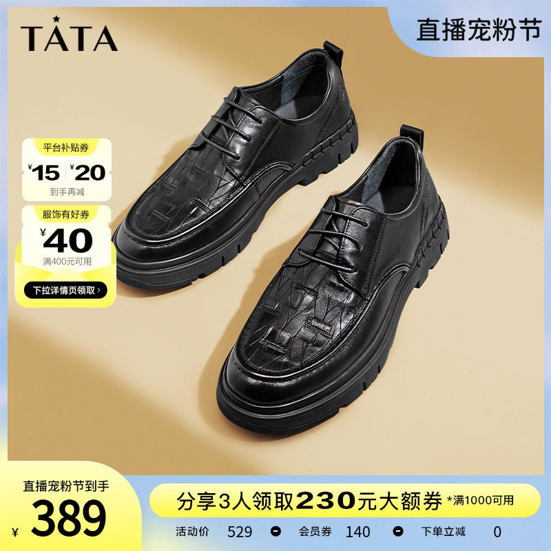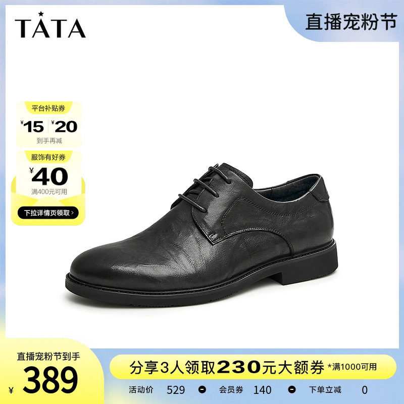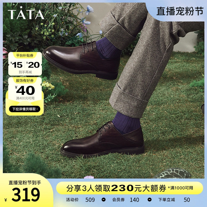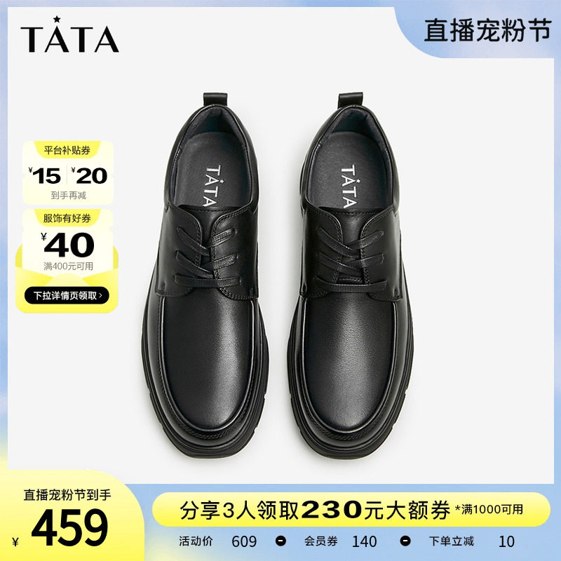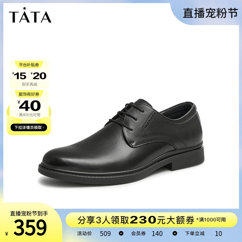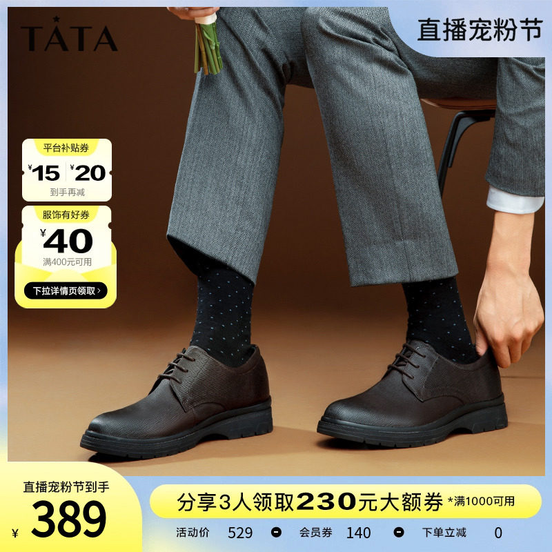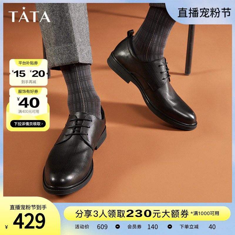 Tata/他她真皮英伦商务正装皮鞋男婚鞋德比鞋2023秋新款OBB01CM3