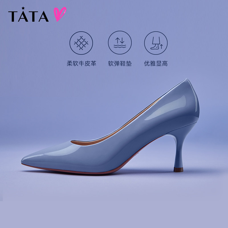 Tata他她牛皮高跟鞋婚鞋女法式尖头细跟单鞋20秋冬新款7DDP1AQ3