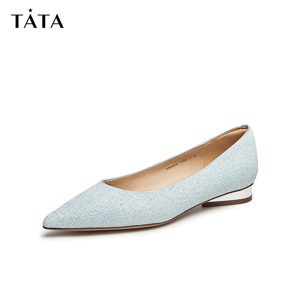 Tata他她法式浅口单鞋女银色平底仙女风婚鞋春季新款7PAA3CQ3