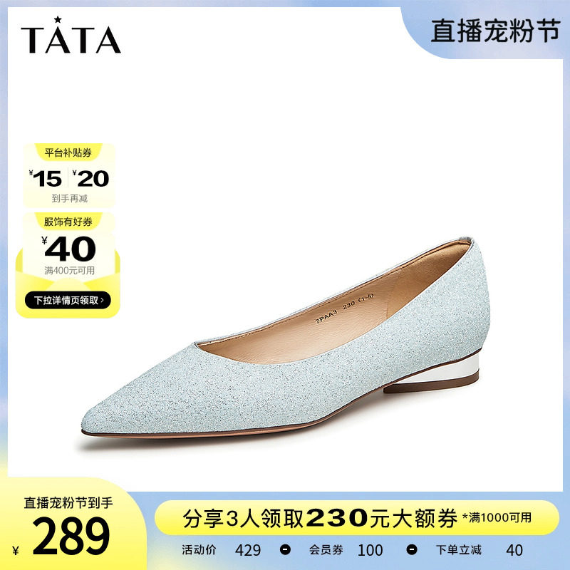 Tata他她法式浅口单鞋女银色平底仙女风婚鞋2023秋冬新款7PAA3CQ3