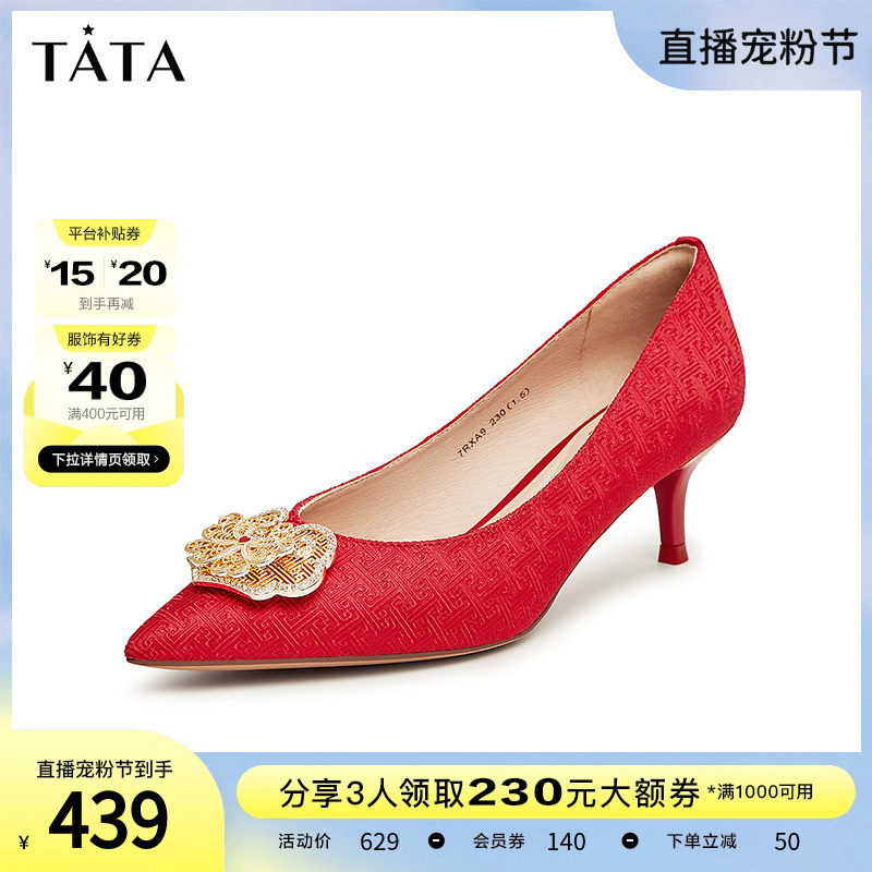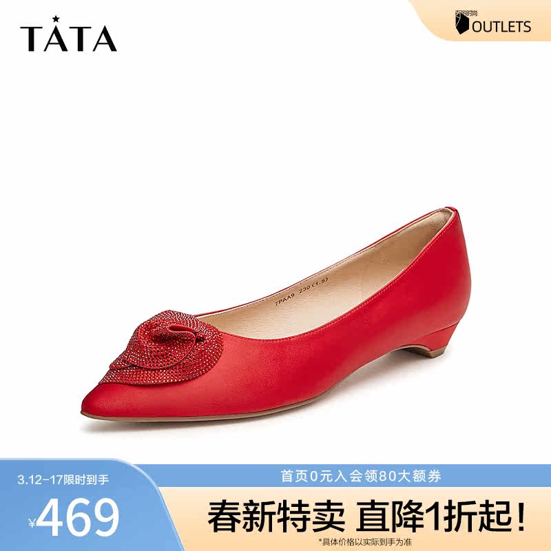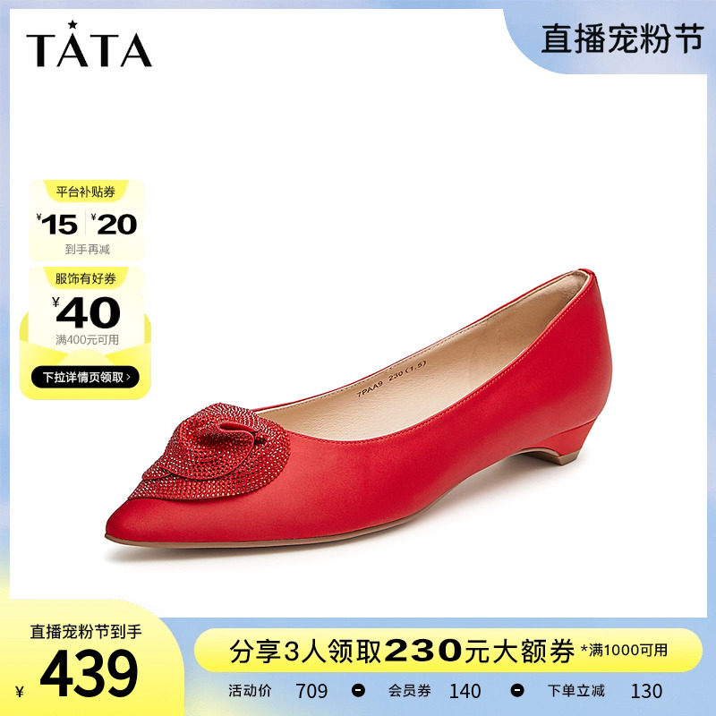 Tata他她中式低跟婚鞋女晚宴秀禾鞋红色单鞋2024春季新款7SC18AQ4