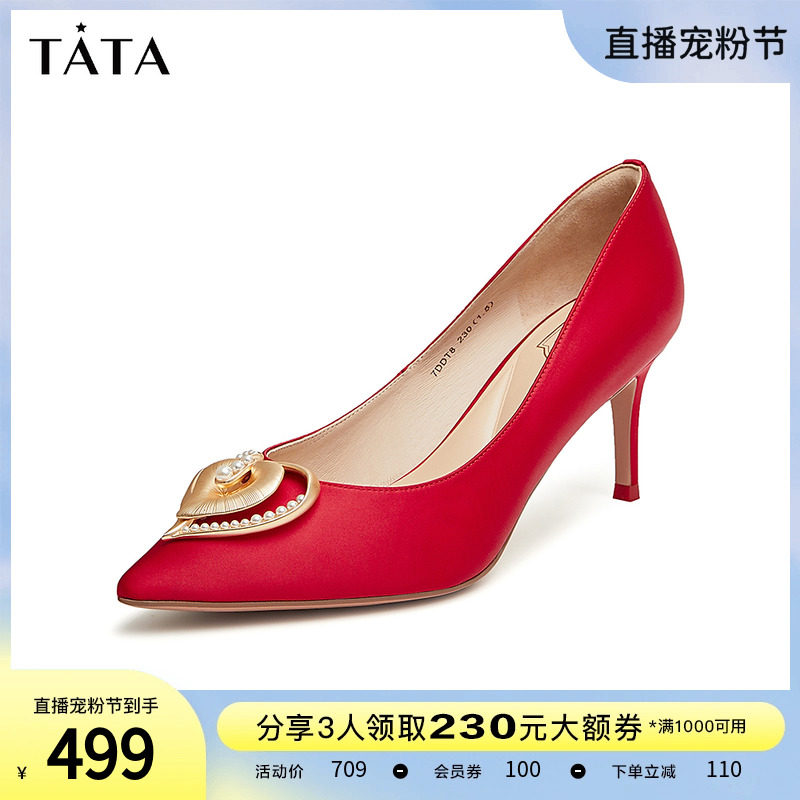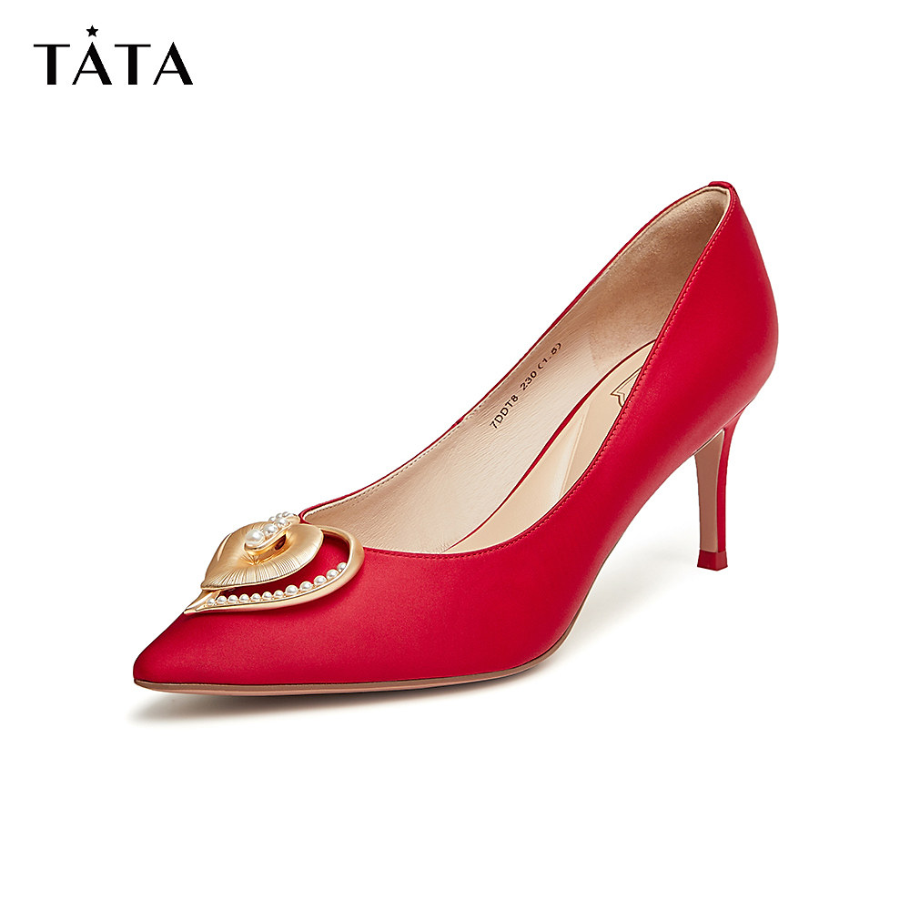 Tata他她高跟鞋女尖头羊皮甜美仙女风单鞋秋季新婚鞋7TV05AQ3