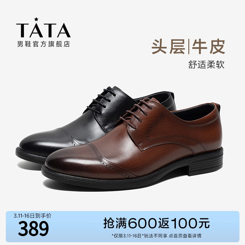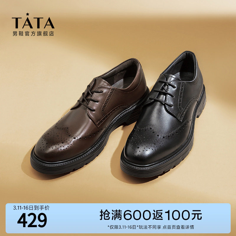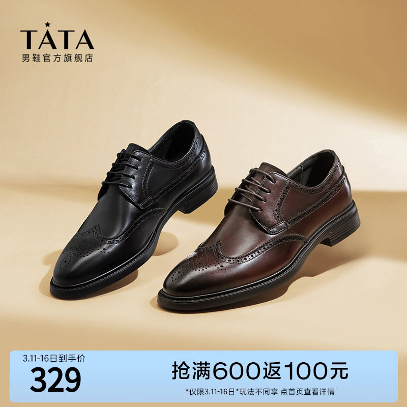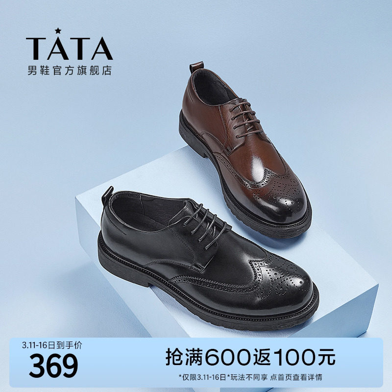 Tata他她商务正装鞋男英伦风布洛克皮鞋牛皮婚鞋2023春新PAN03AM3