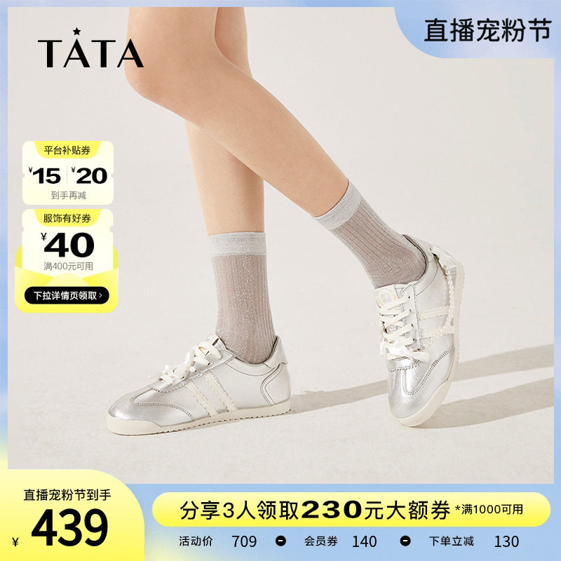 Tata他她法式时尚阿甘鞋女银色休闲运动板鞋婚鞋2024春新7TY23AM4