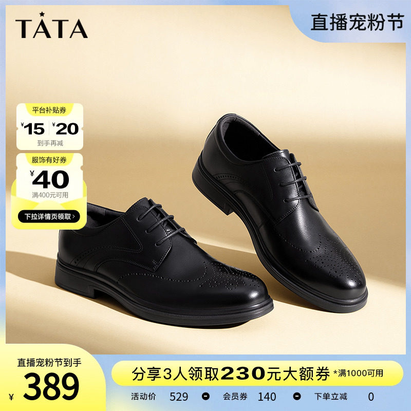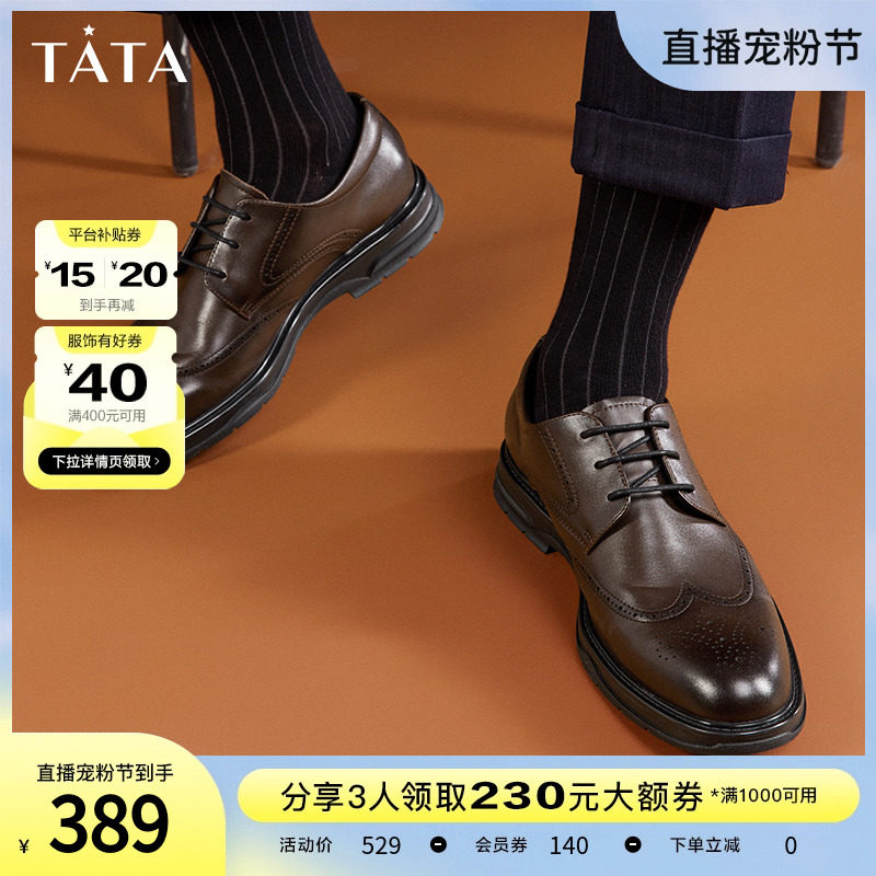 Tata他她英伦布洛克雕花皮鞋男士商务休闲德比鞋新郎婚鞋VZR01AM3