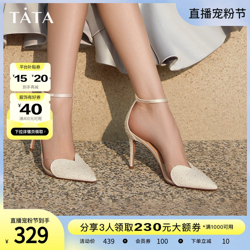 Tata他她包头凉鞋女细跟高跟鞋女婚鞋新娘鞋2023年夏新款7DDQ2BH3