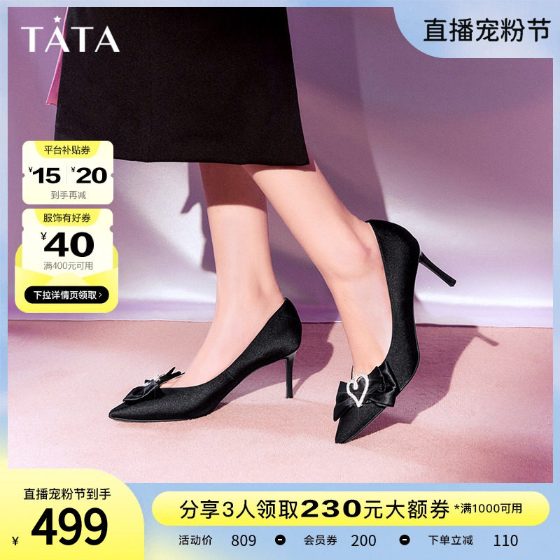 Tata他她晚宴高跟鞋女法式优雅婚鞋浅口细跟单鞋2024春新7DDU2AK4