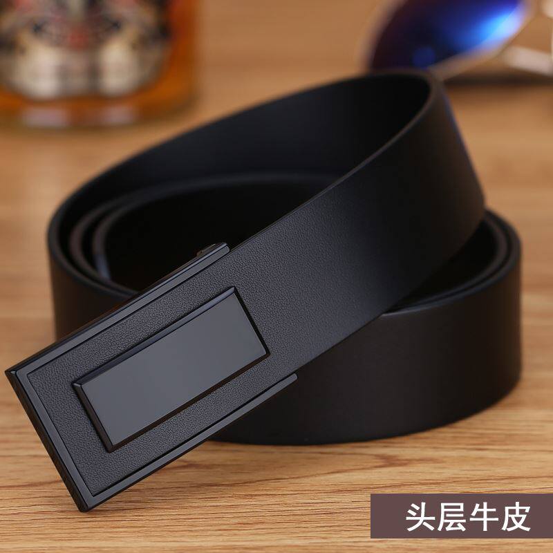 VGXOUE头层牛皮皮带男真皮休闲无牙自动扣黑色腰带男真皮青年裤带