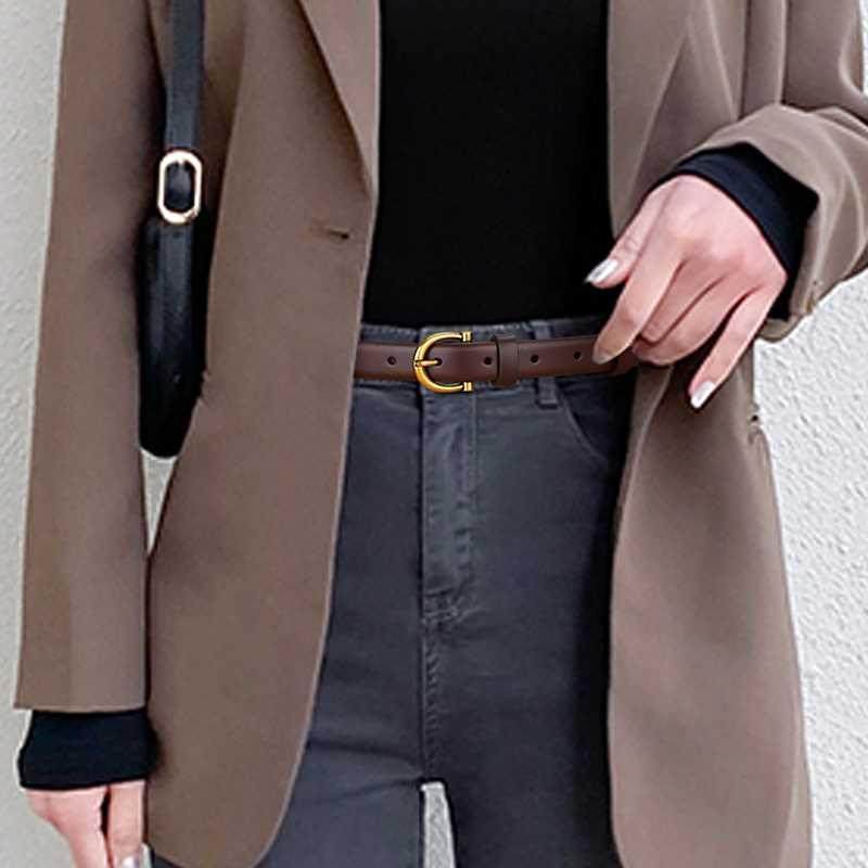 VGXOUE皮带女真皮休闲铜扣头层牛皮皮带女牛仔裤腰带细款装饰百搭