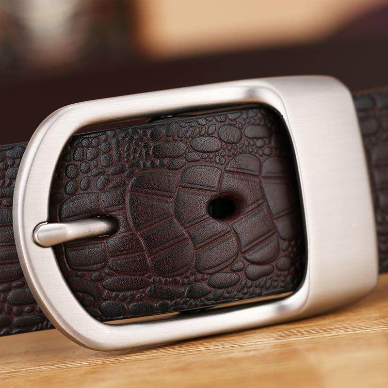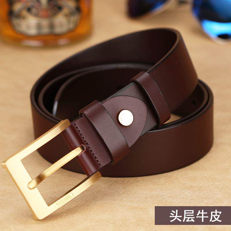 VGXOUE皮带男青年针扣休闲裤带男潮头层纯牛皮铜扣腰带男中年