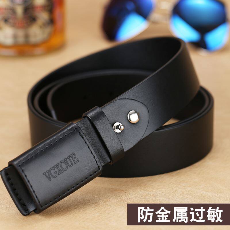 VGXOUE皮带男真皮防金属过敏平滑扣腰带头层牛皮中青年牛仔裤腰带