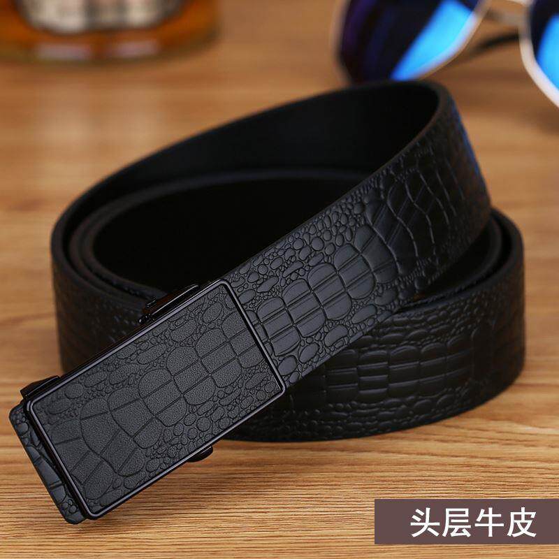 VGXOUE头层牛皮皮带男真皮休闲商务自动扣腰带男士黑色青中年裤带