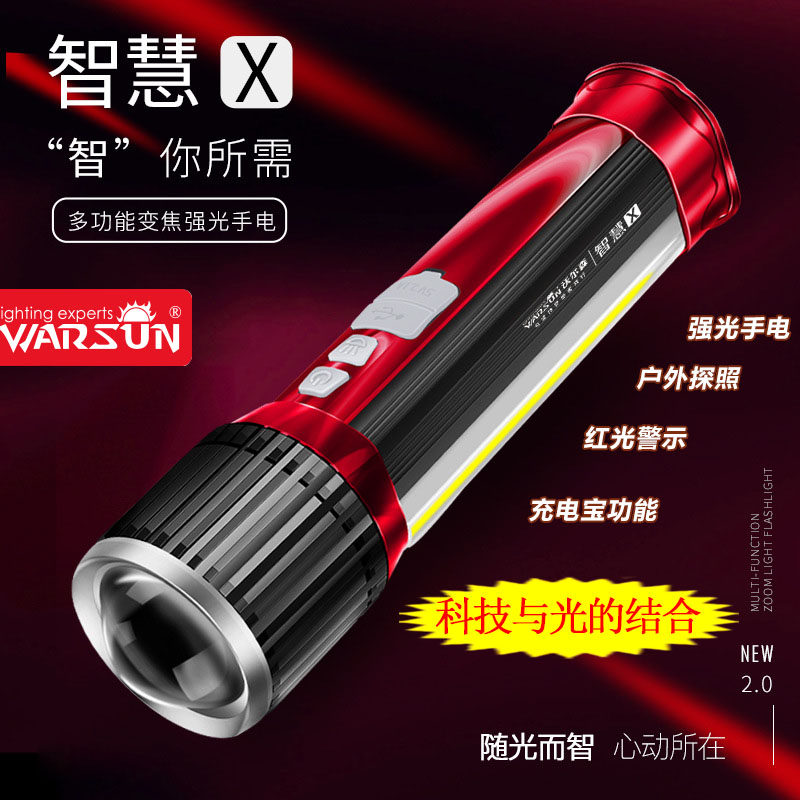 Warsun沃尔森X900手电筒多功能变焦强光手电超亮远射led可充电非
