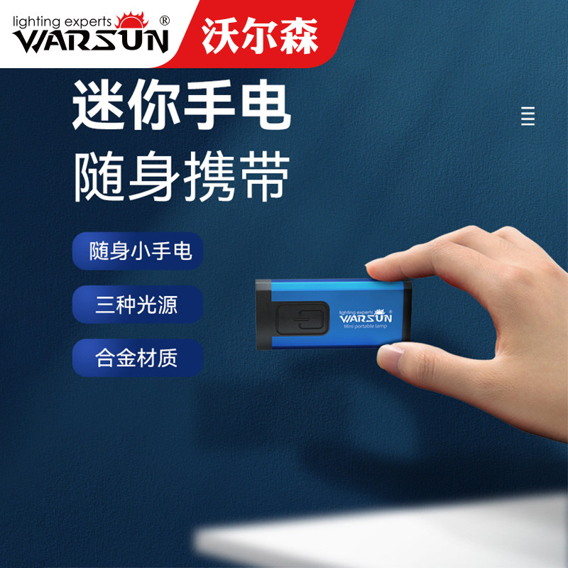 Warsun沃尔森LED超亮迷你强光手电筒可充电户外家用超小袖珍微型