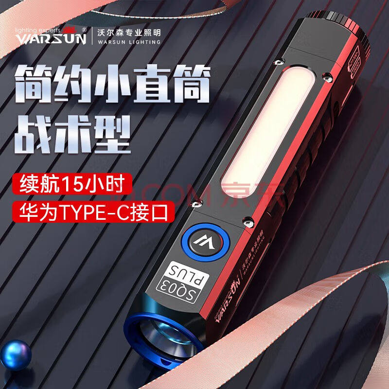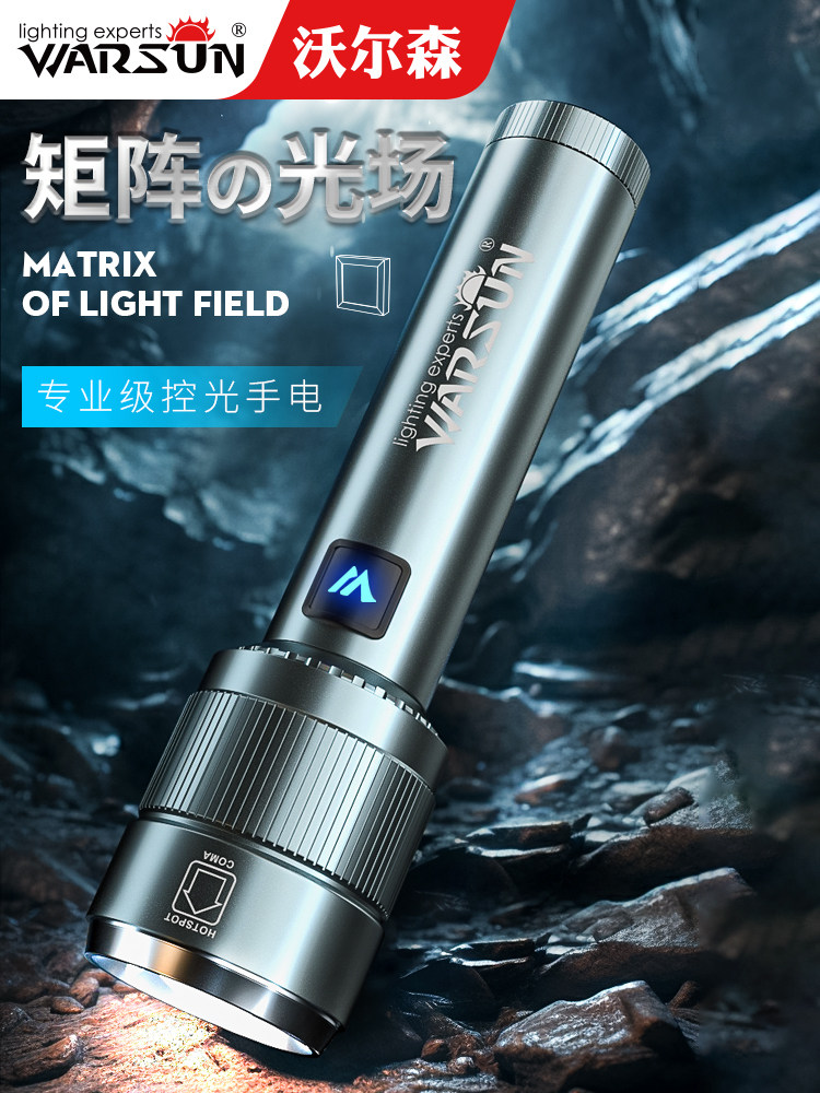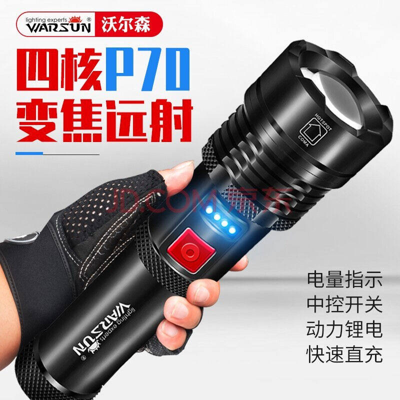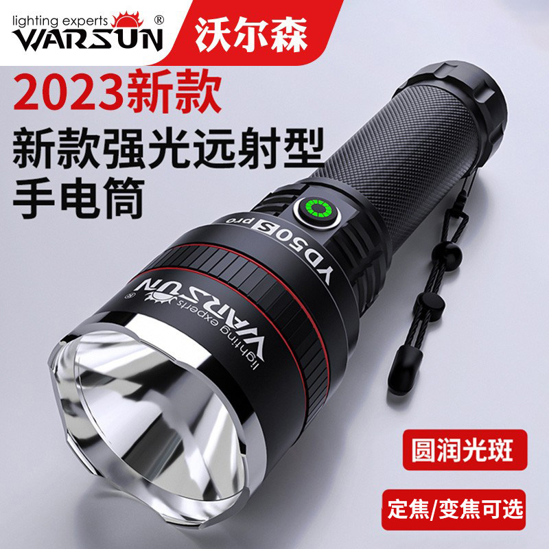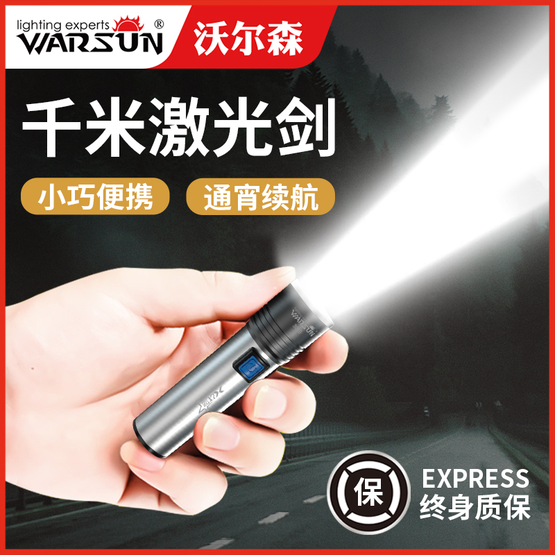 沃尔森warsun手电筒超长续航充电强光远射户外家用超亮多功能led
