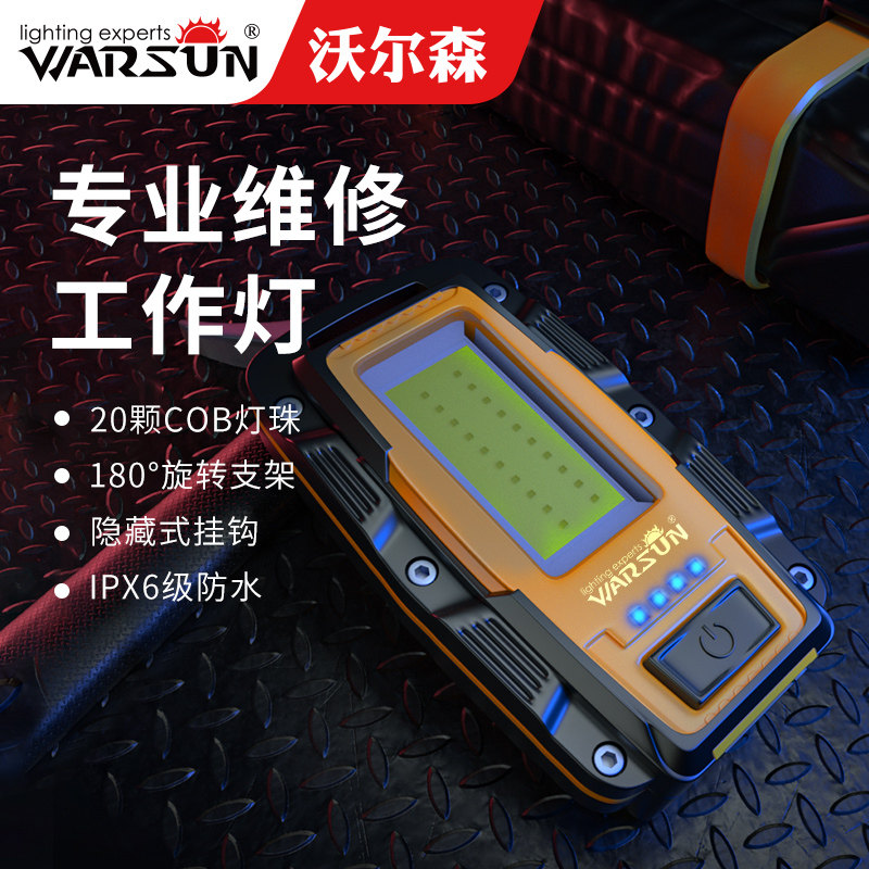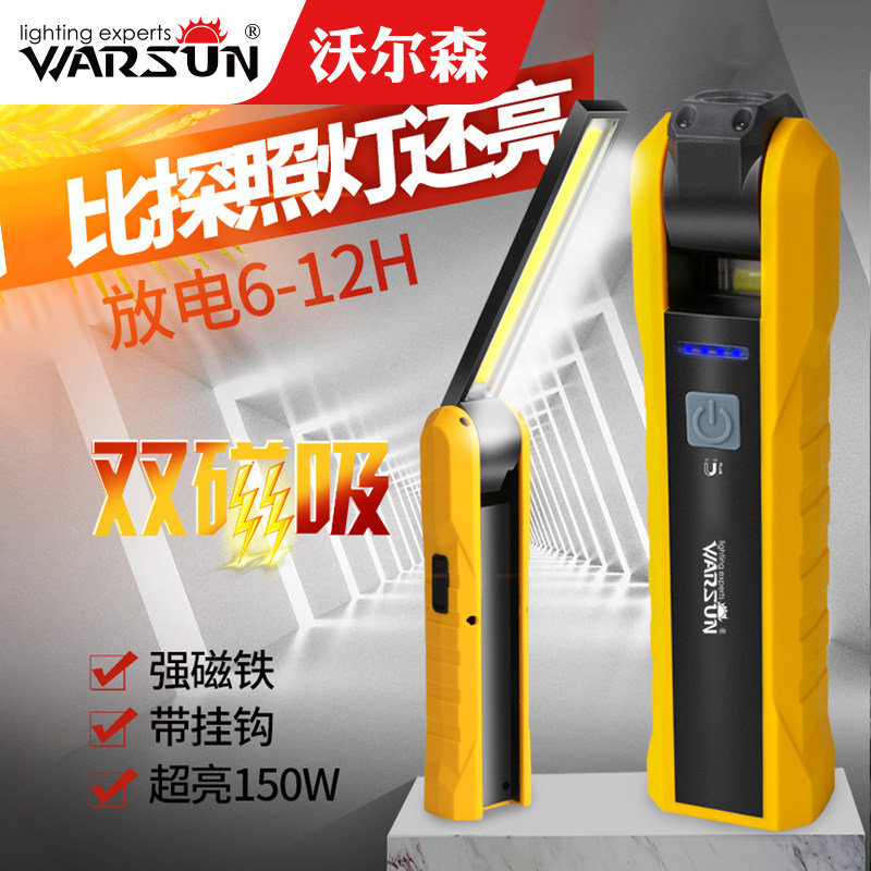 沃尔森工作灯汽修维修灯强光迷你超亮充电手电筒强磁铁修车照明灯