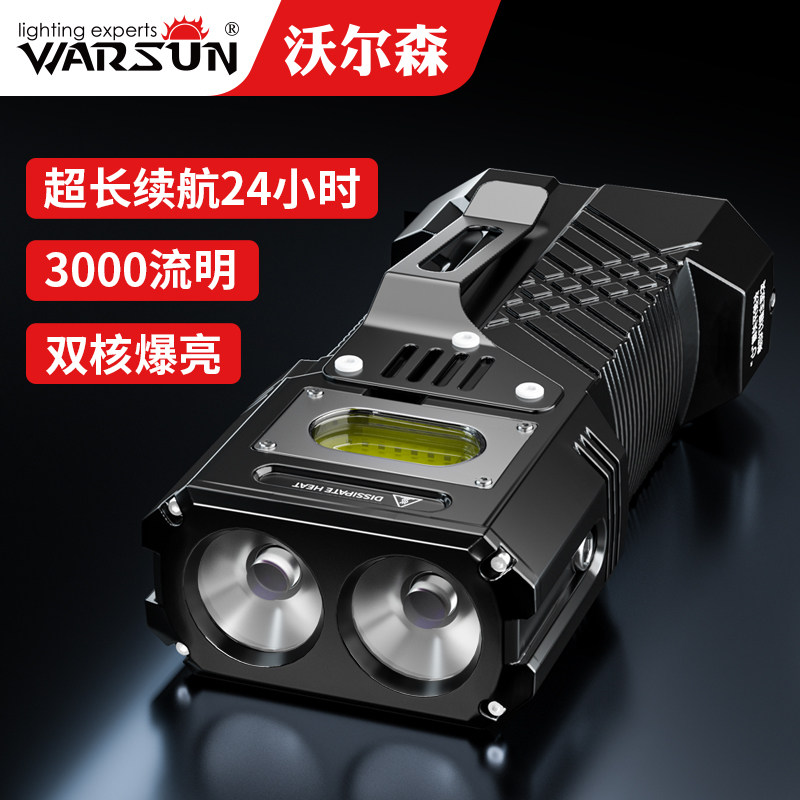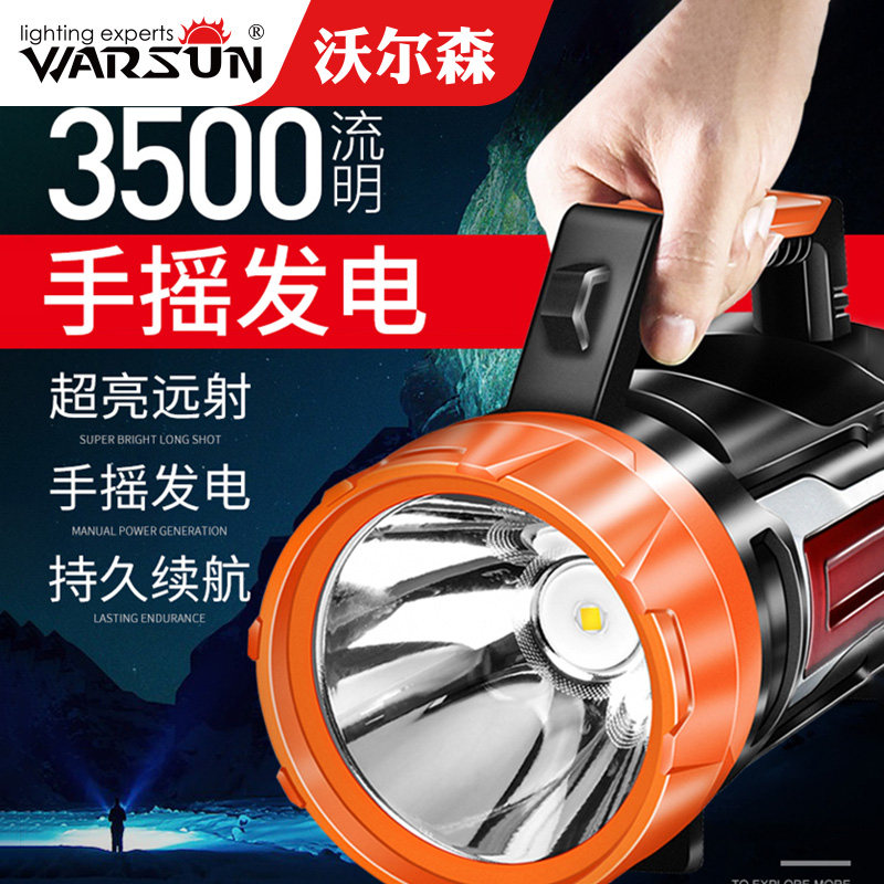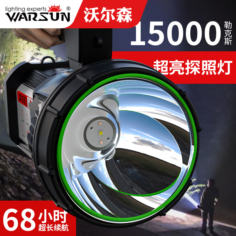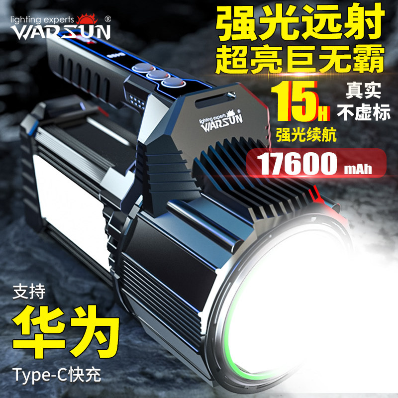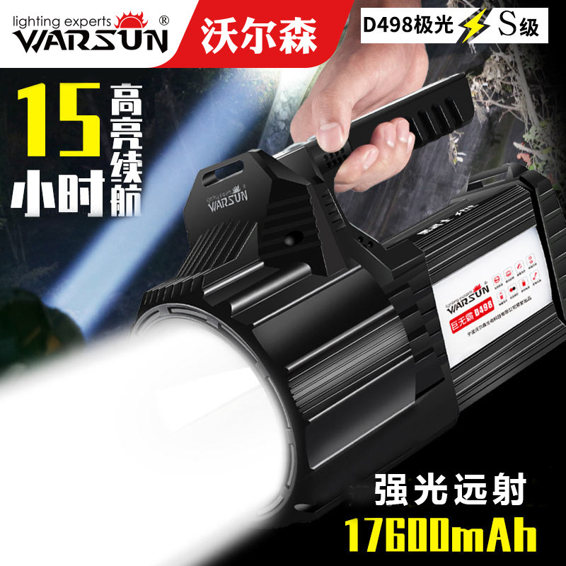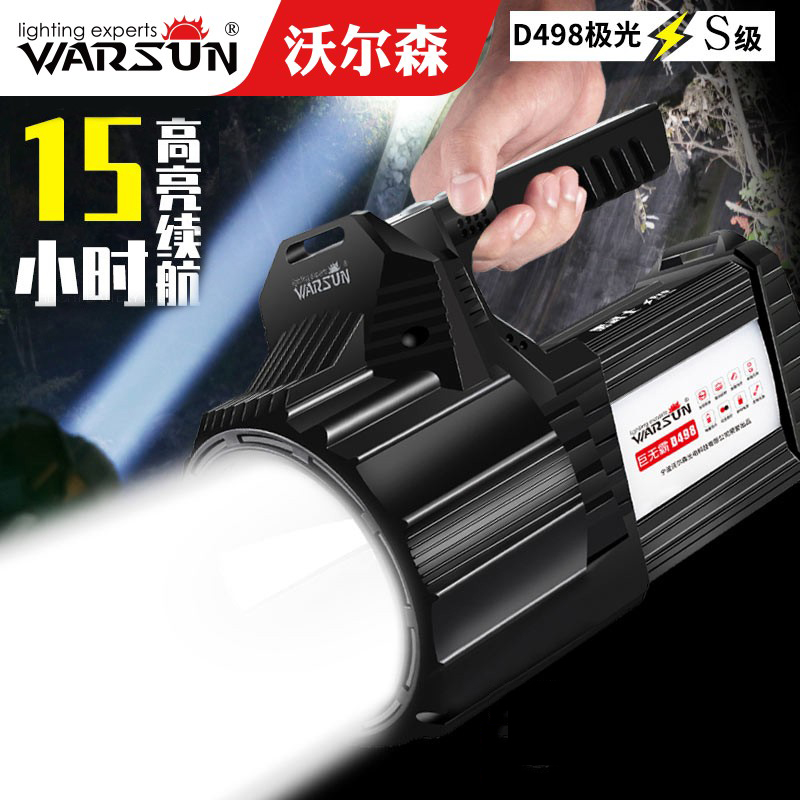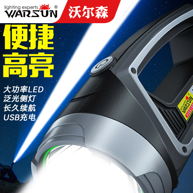 沃尔森Warsun手电筒led强光探照灯多功能手提灯远射充电式大功率