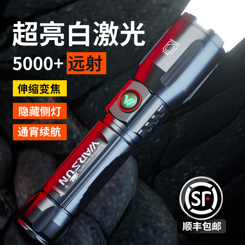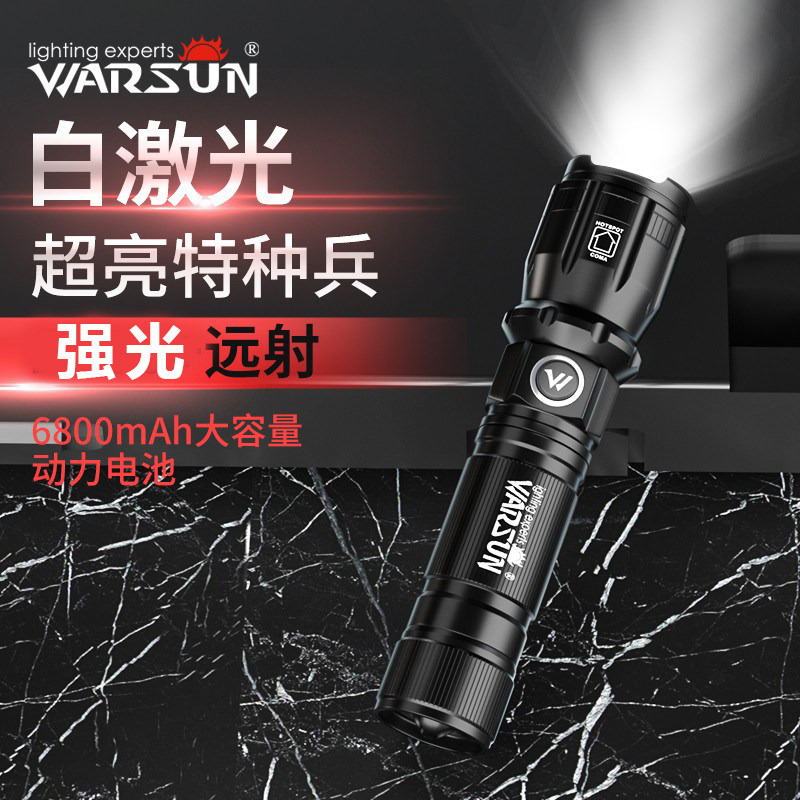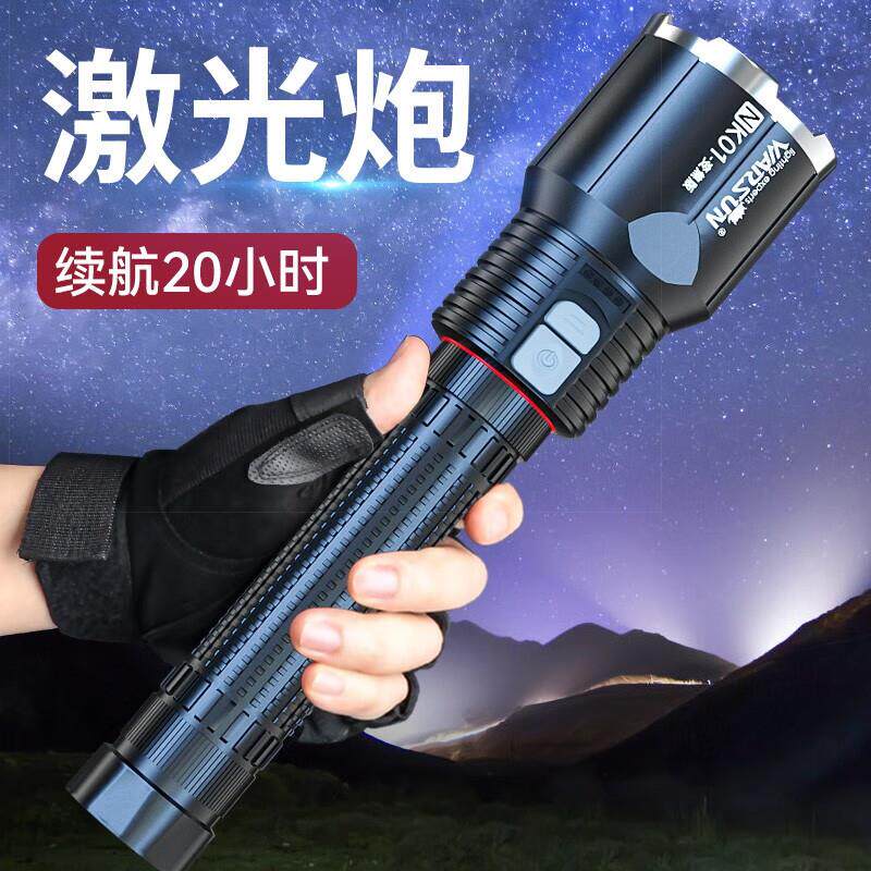 沃尔森手电筒家用可充电式户外强流明远射氙气灯白激光高强光超亮