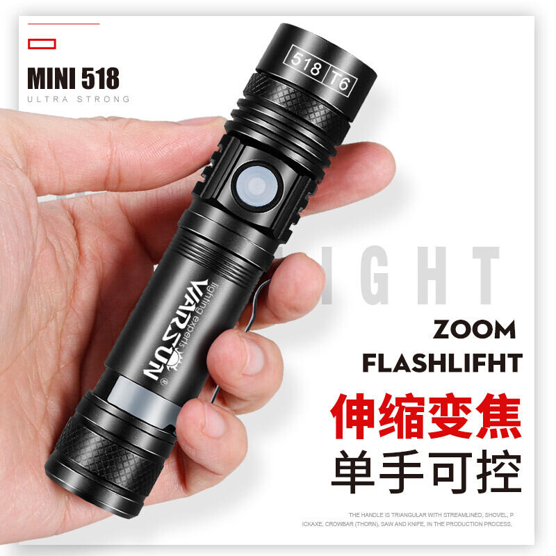 Warsun沃尔森X50T6强光变焦手电筒迷你可充电远射超亮探照灯LED户