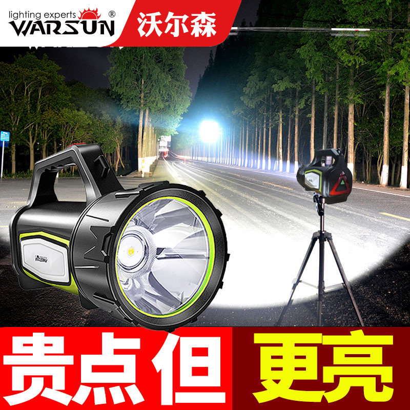 沃尔森加油站LED手提式超长续航探照灯100远程强光手电筒可充电w