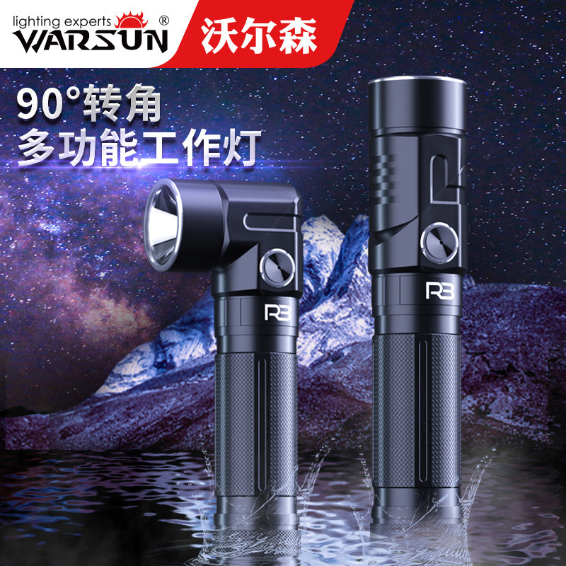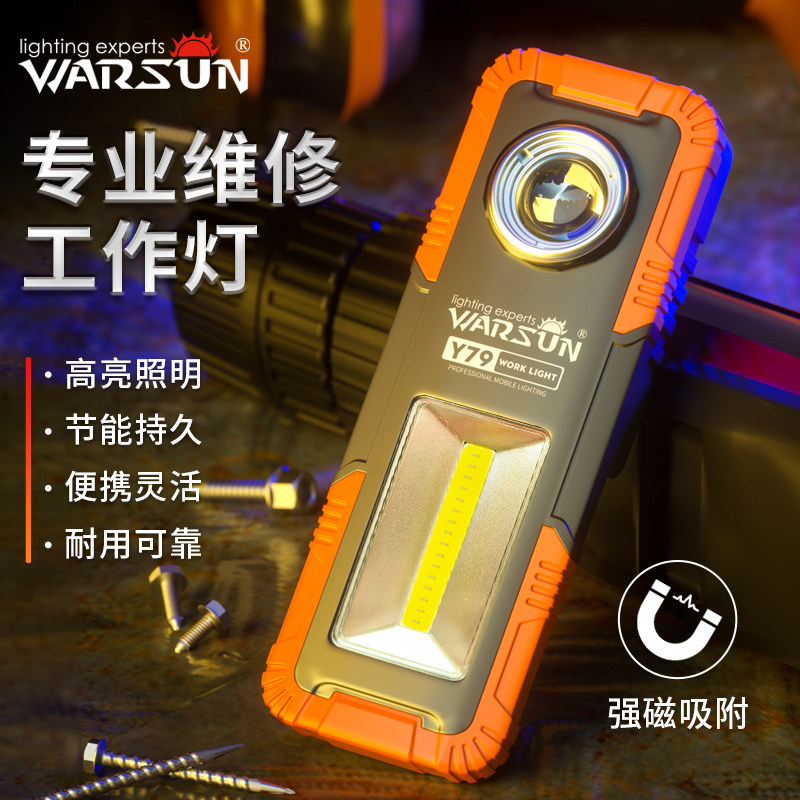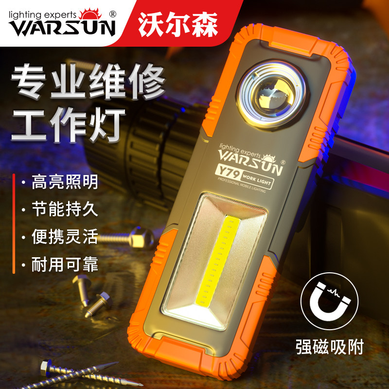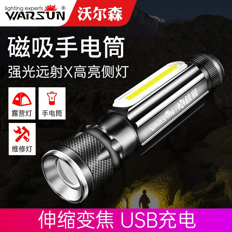 Warsun强光超亮户外远射充电防灾多功能手电筒工作照明磁铁汽修维